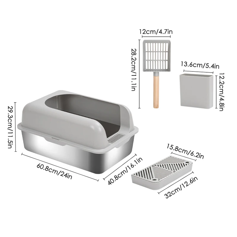 Mantenimiento más fácil: viene con una pala para arena y un soporte para pala montable en la pared para facilitar la limpieza.