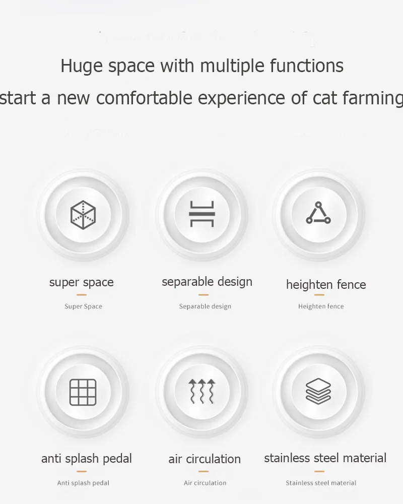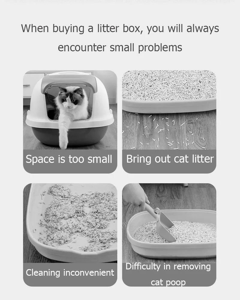 La caja de arena con envoltura alrededor de las esquinas es ideal para gatos grandes, evitando que los gatos salpiquen la basura fuera de las sartenes y permiten la privacidad.Ofrezca a los gatos que se muevan cómodamente mientras hacen sus negocios.