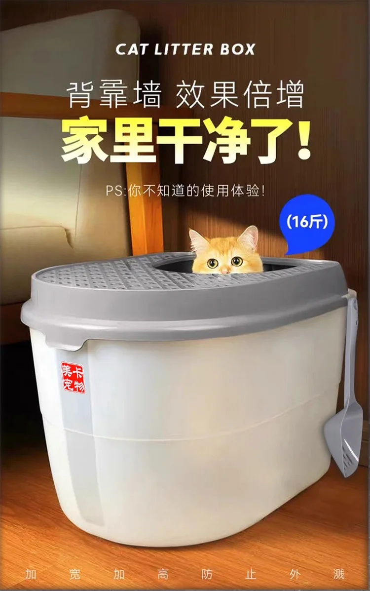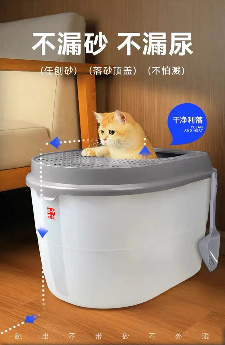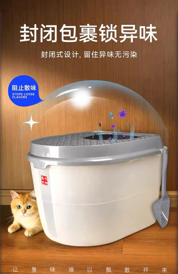 Caja de arena para gatos con entrada superior, totalmente cerrada, de gran tamaño, a prueba de salpicaduras, PetToilet, caja de arena para gatos extra grande