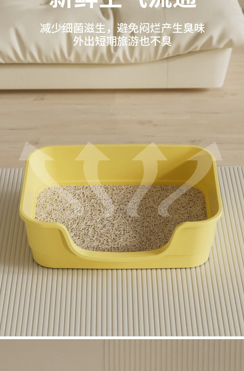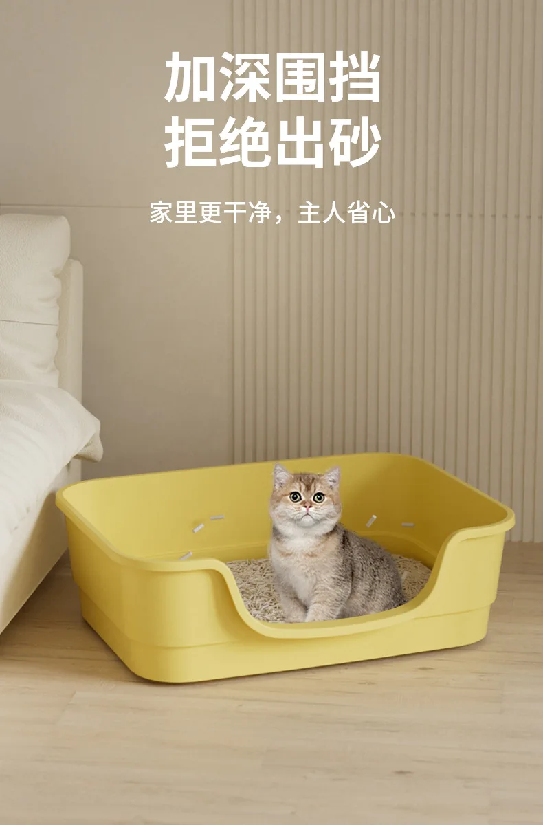 Caja de arena para gatos de gran tamaño, bañera pequeña, desodorante semicerrado abierto y inodoro para mascotas a prueba de salpicaduras, pala libre para gatos