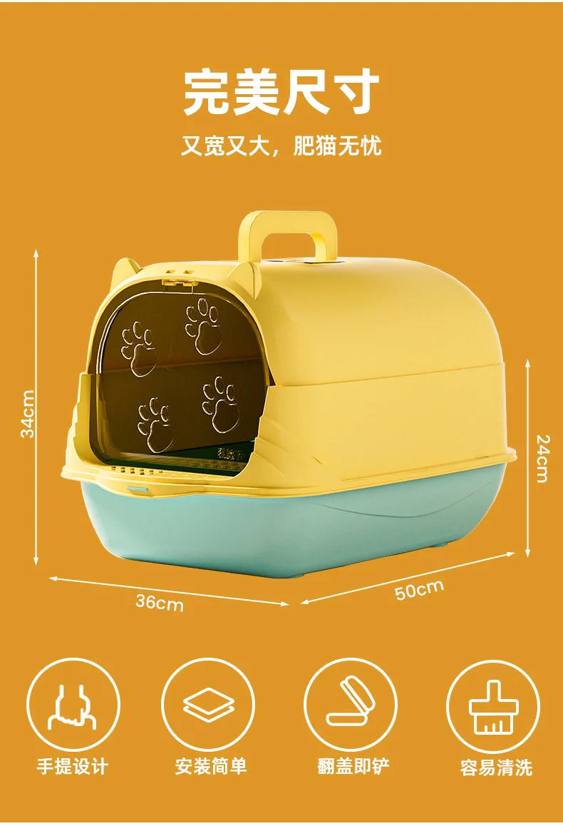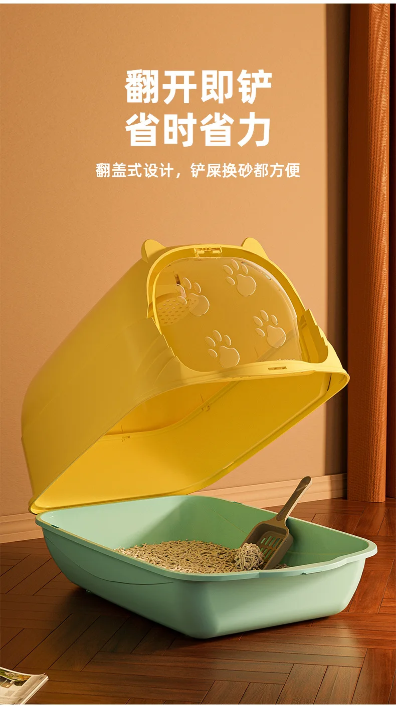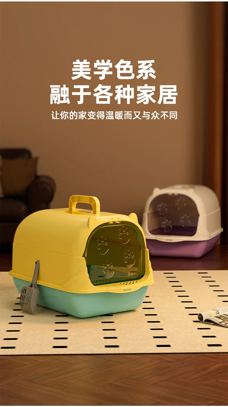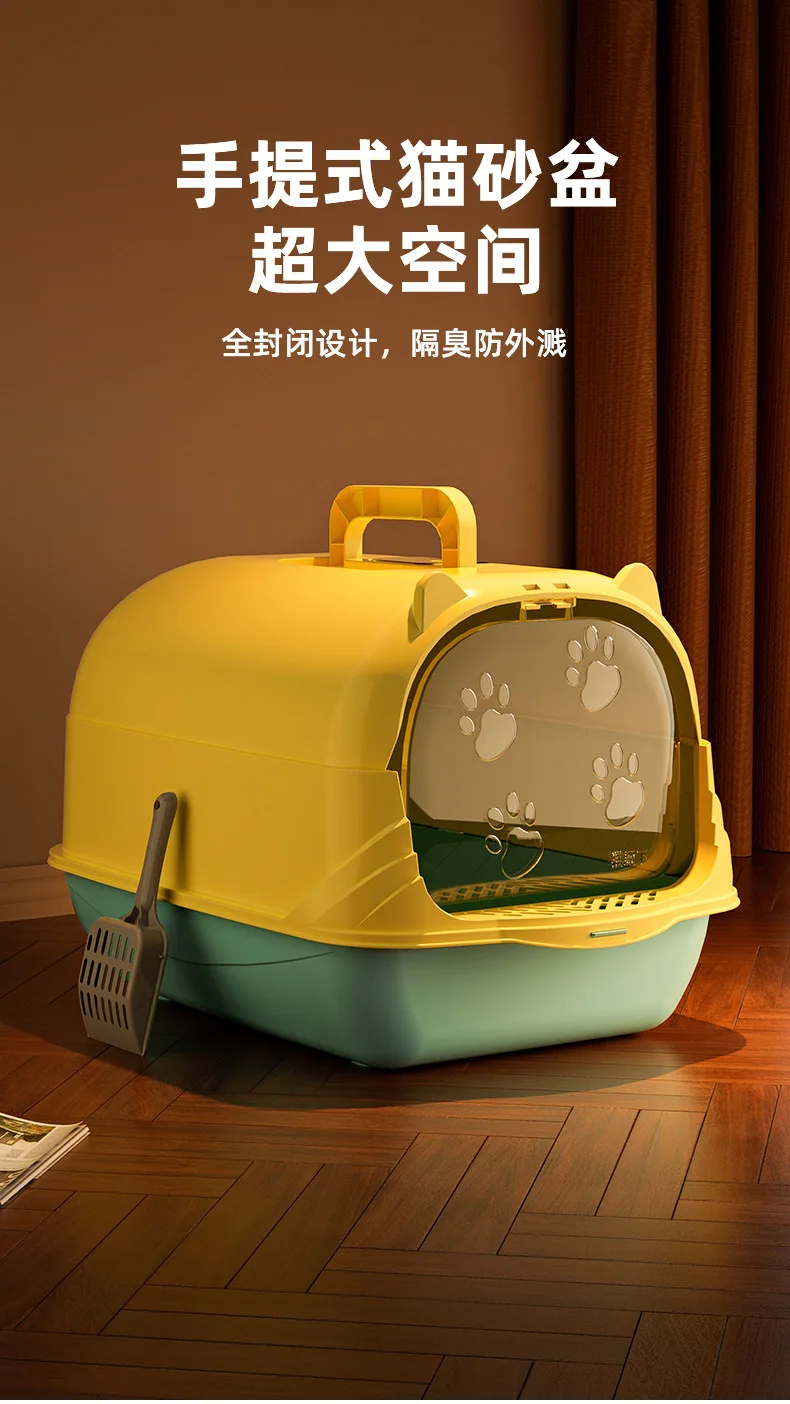 Caja de arena para gatos de gran tamaño, completamente cerrada o semicerrada, a prueba de olores y salpicaduras, productos para mascotas