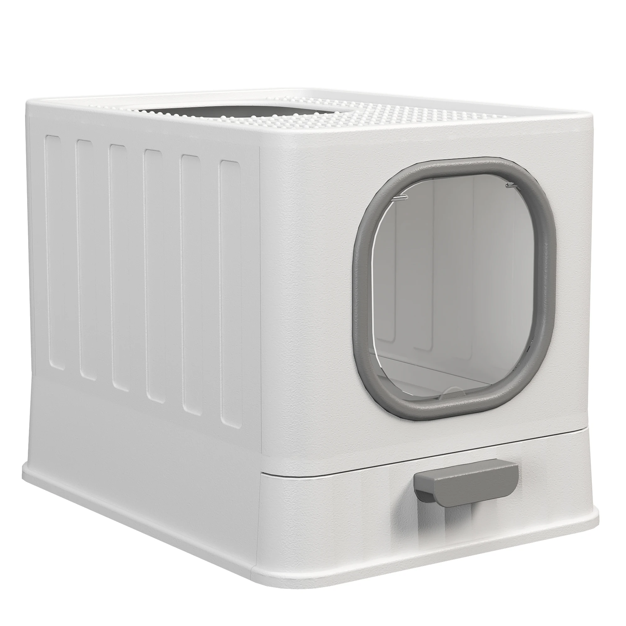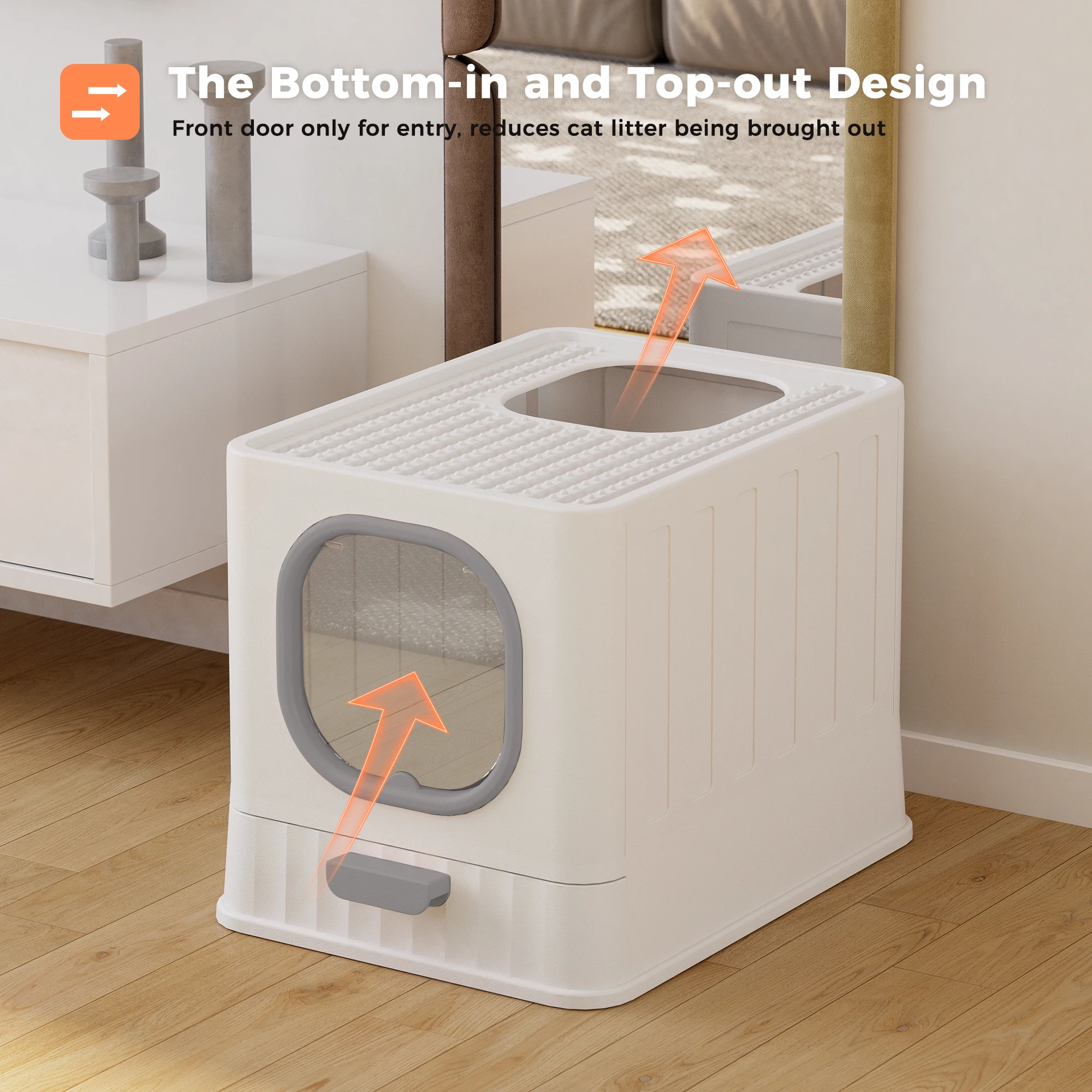 Caja de arena para gatos de gran tamaño con tablero para rascar, suministros para mascotas, bandeja de baño para gatos estilo cajón cerrado