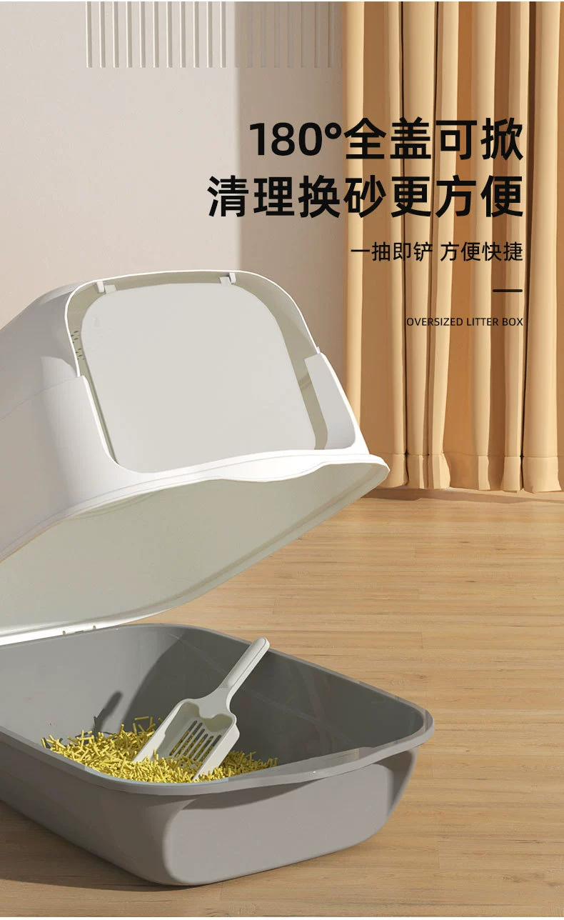 Buen diseño para el dinero, la parte superior giratoria para limpiar la arena para gatos es una solución de diseño ordenada, es de plástico liviano, por lo que no es bueno para estar al sol.