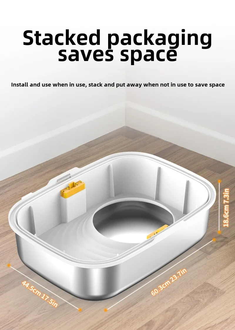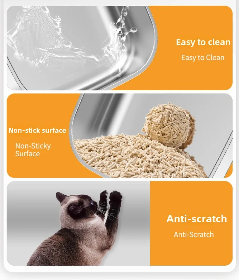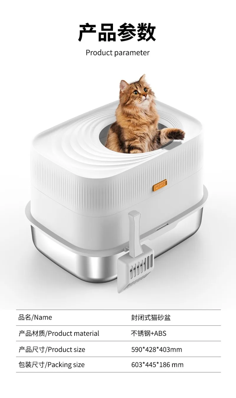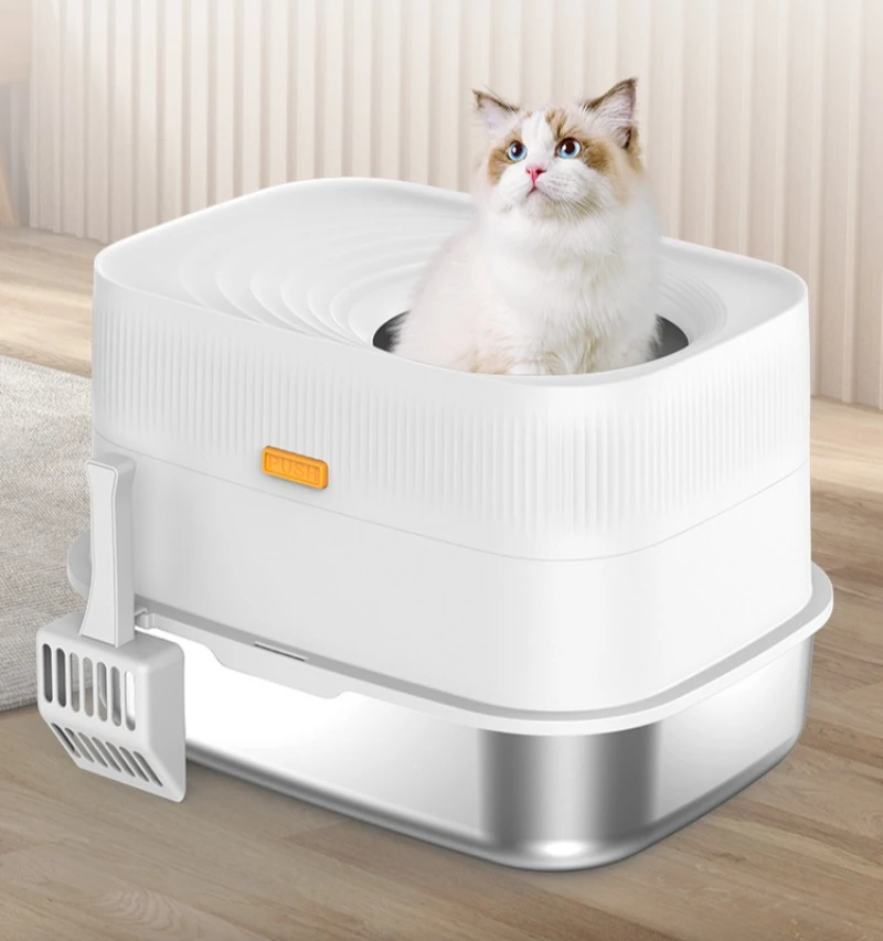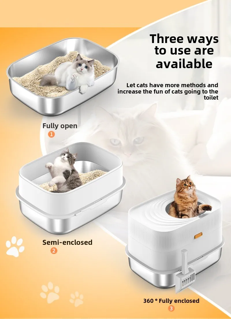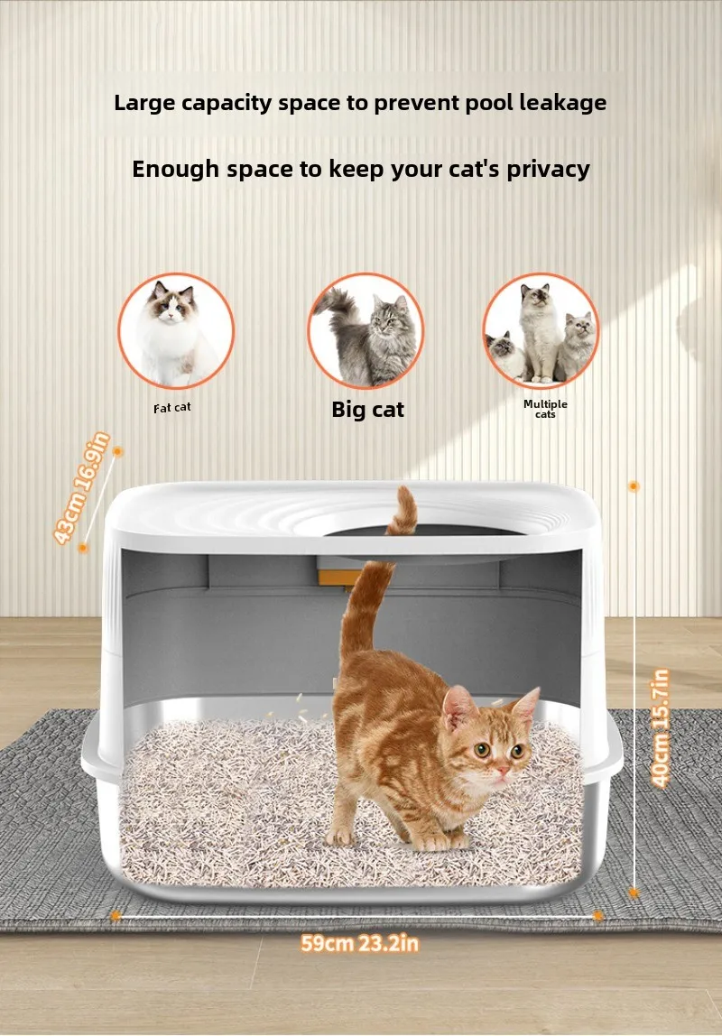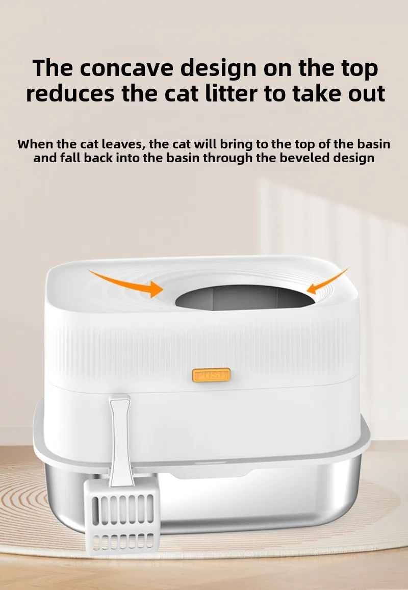 Caja de arena para gatos grande totalmente cerrada de acero inoxidable, entrada superior, fácil de limpiar, suministros de productos para mascotas, accesorios para orinales no pegajosos
