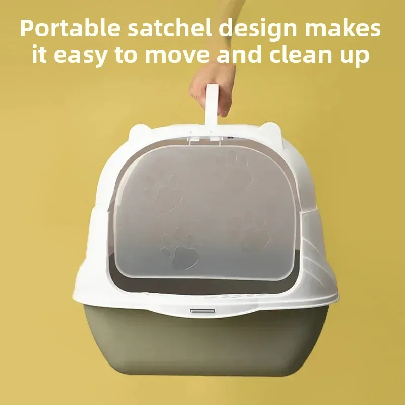 Caja de arena para gatos grande, totalmente semicerrada, doble propósito, antisalpicaduras, tapa abatible, suministros para gatos a prueba de olores