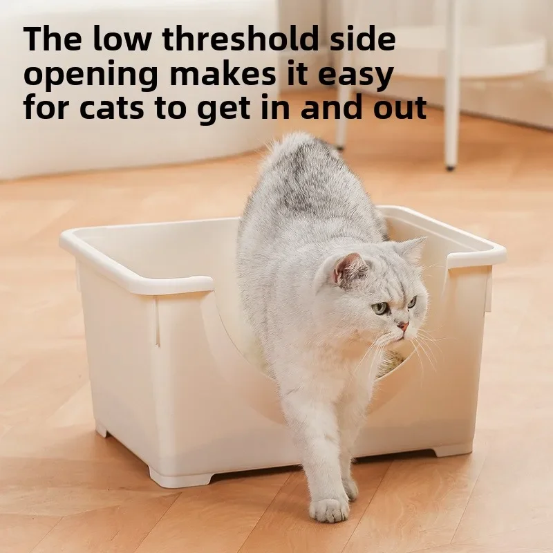 Caja de arena para gatos, inodoro abierto semicerrado de gran tamaño para mascotas, a prueba de olores, a prueba de salpicaduras, lavabo para excrementos de gatitos, inodoro para mascotas, caja de arena para gatos