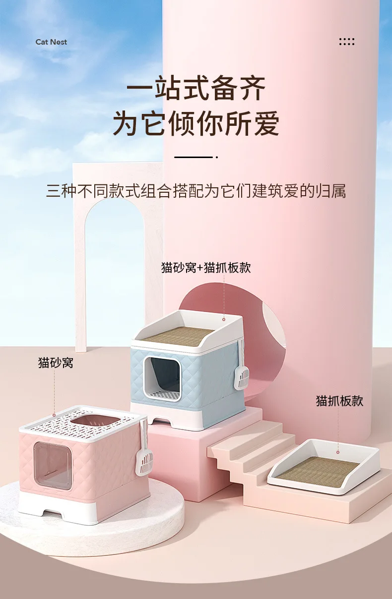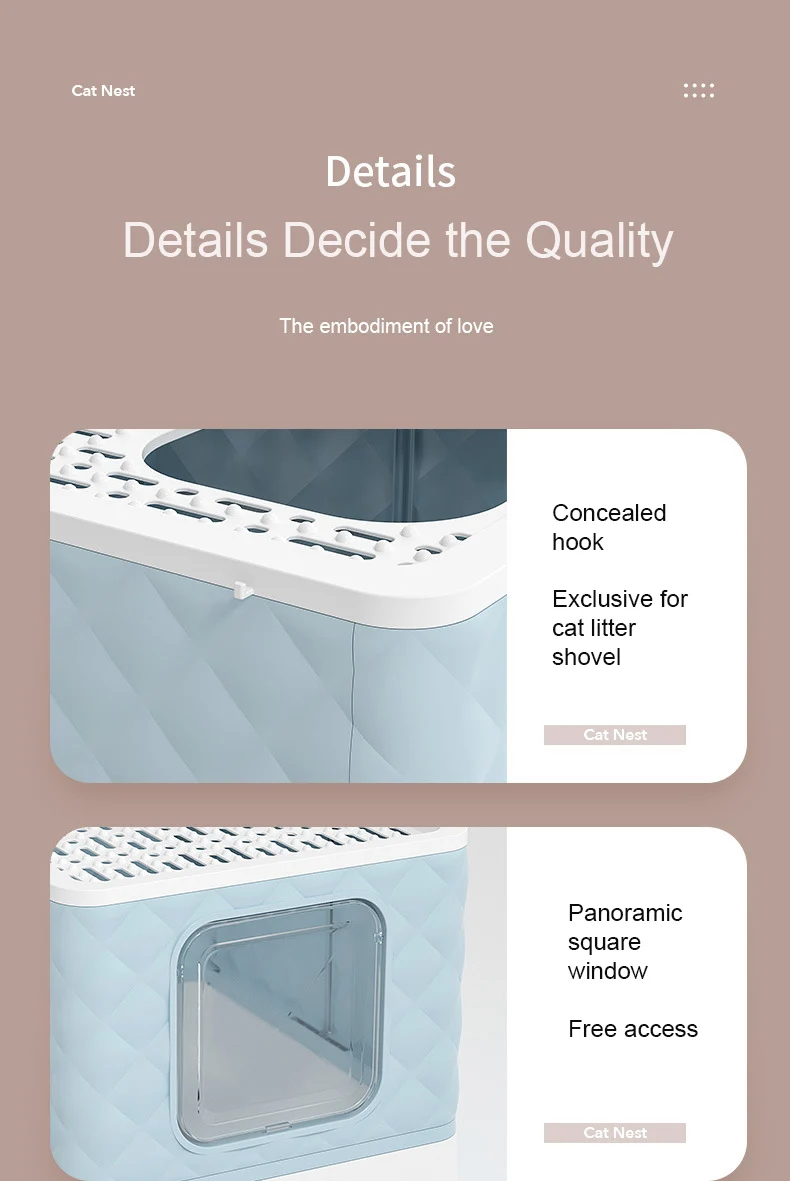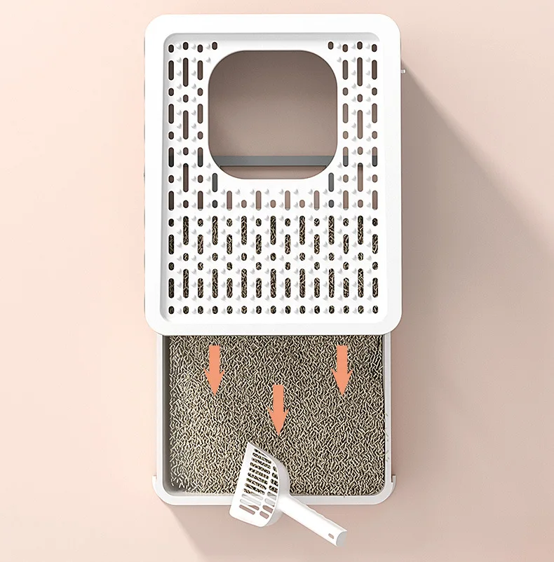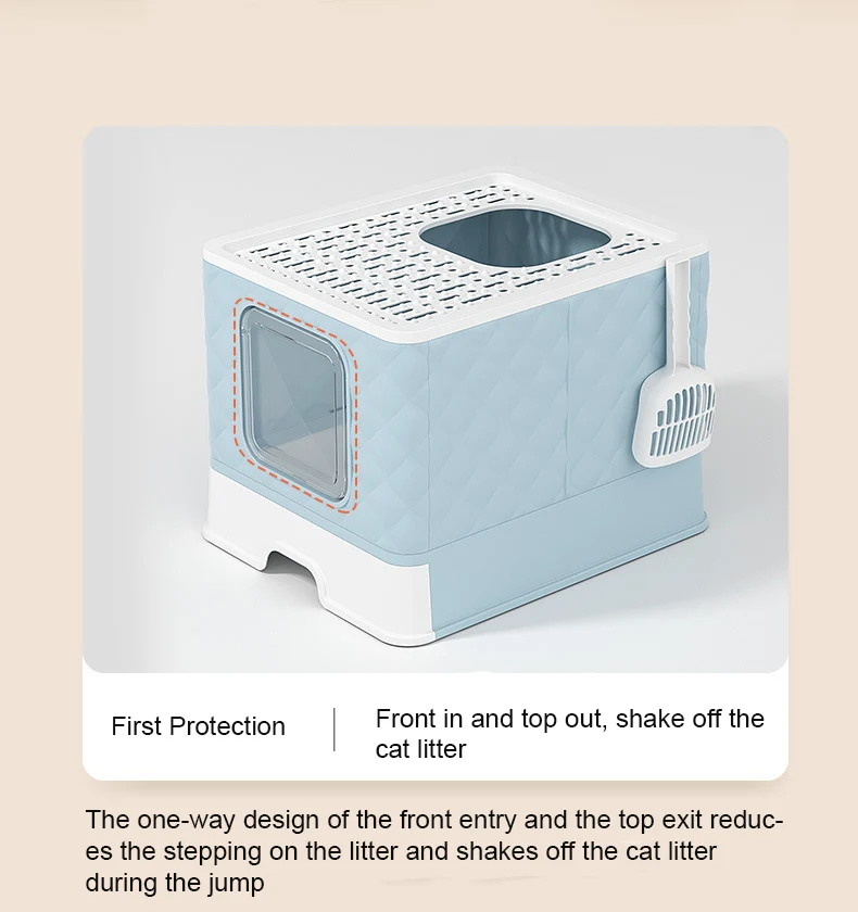 Caja de arena para gatos, inodoro antisalpicaduras completamente cerrado para gatos, dos vías con pala rascadora, bandeja de arena para gatos de gran capacidad