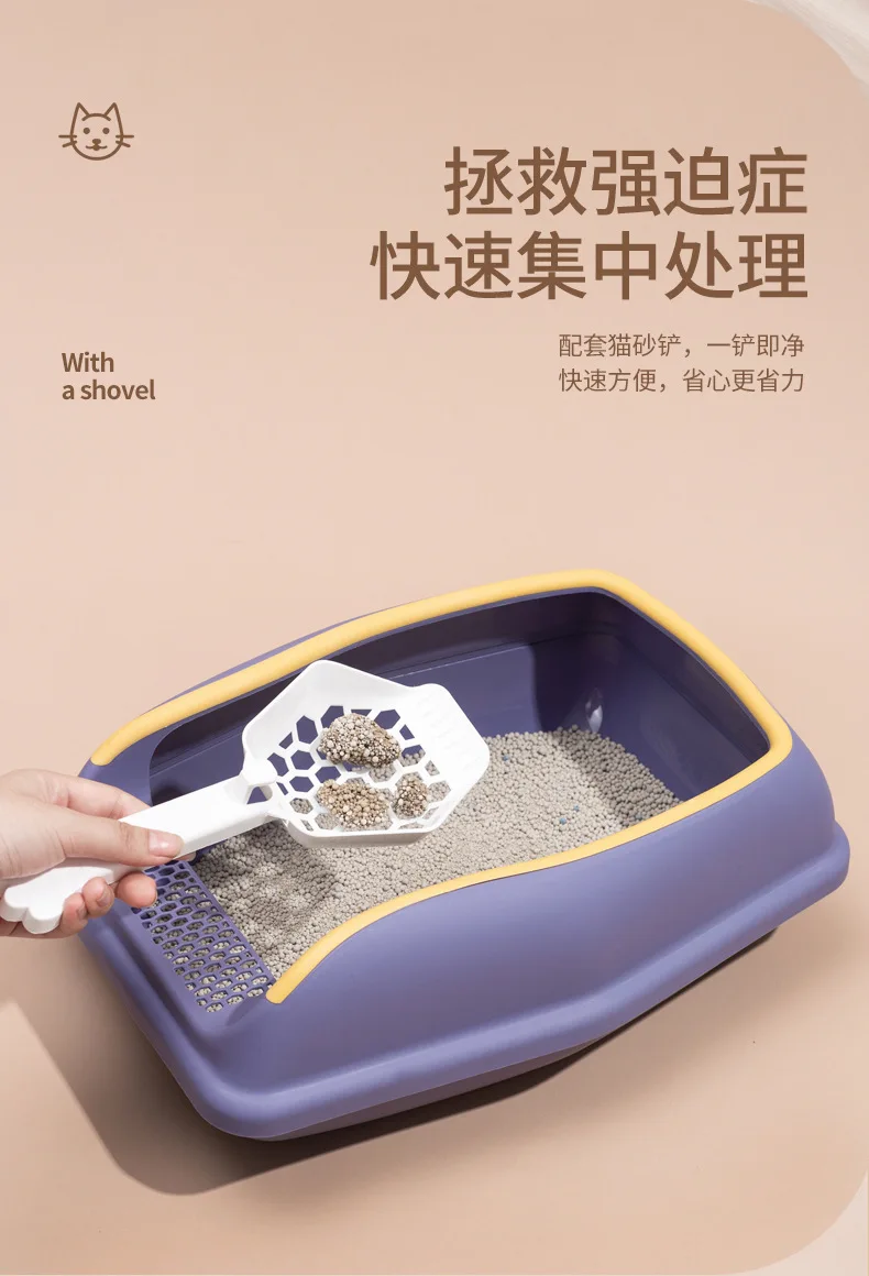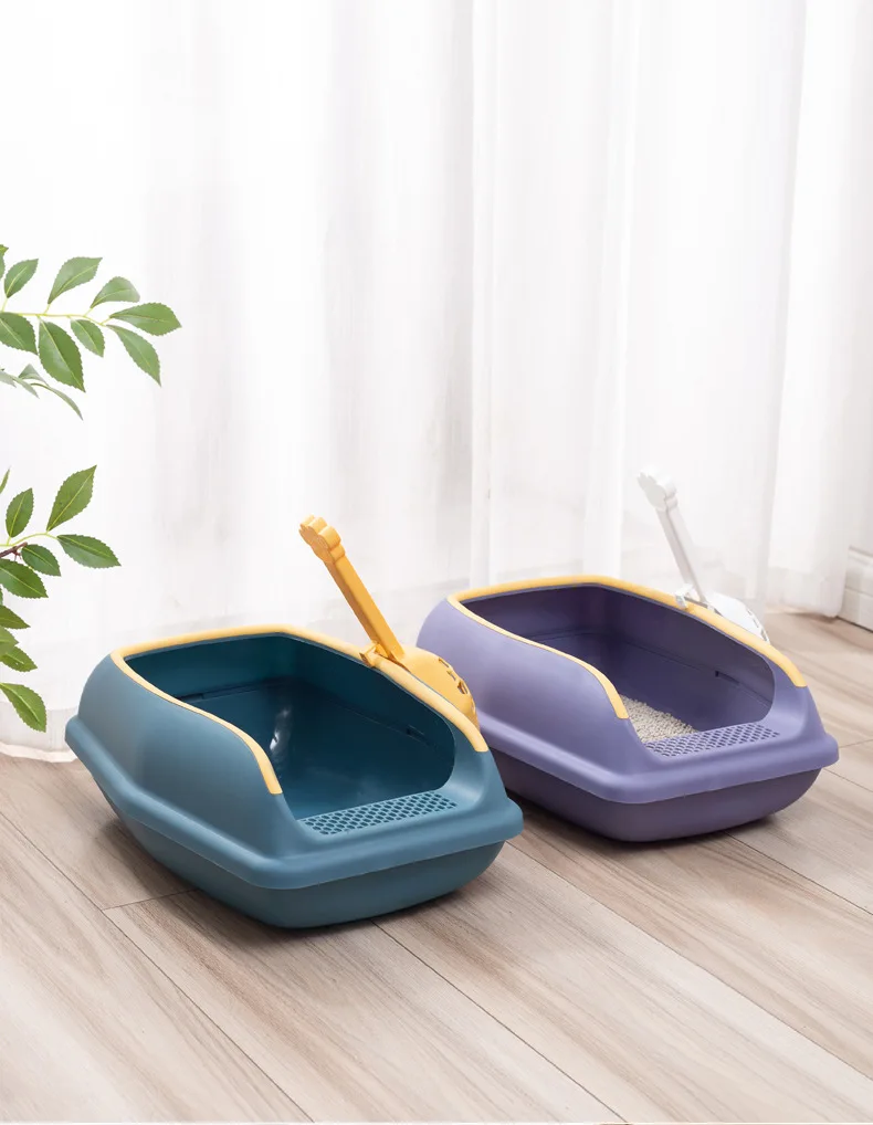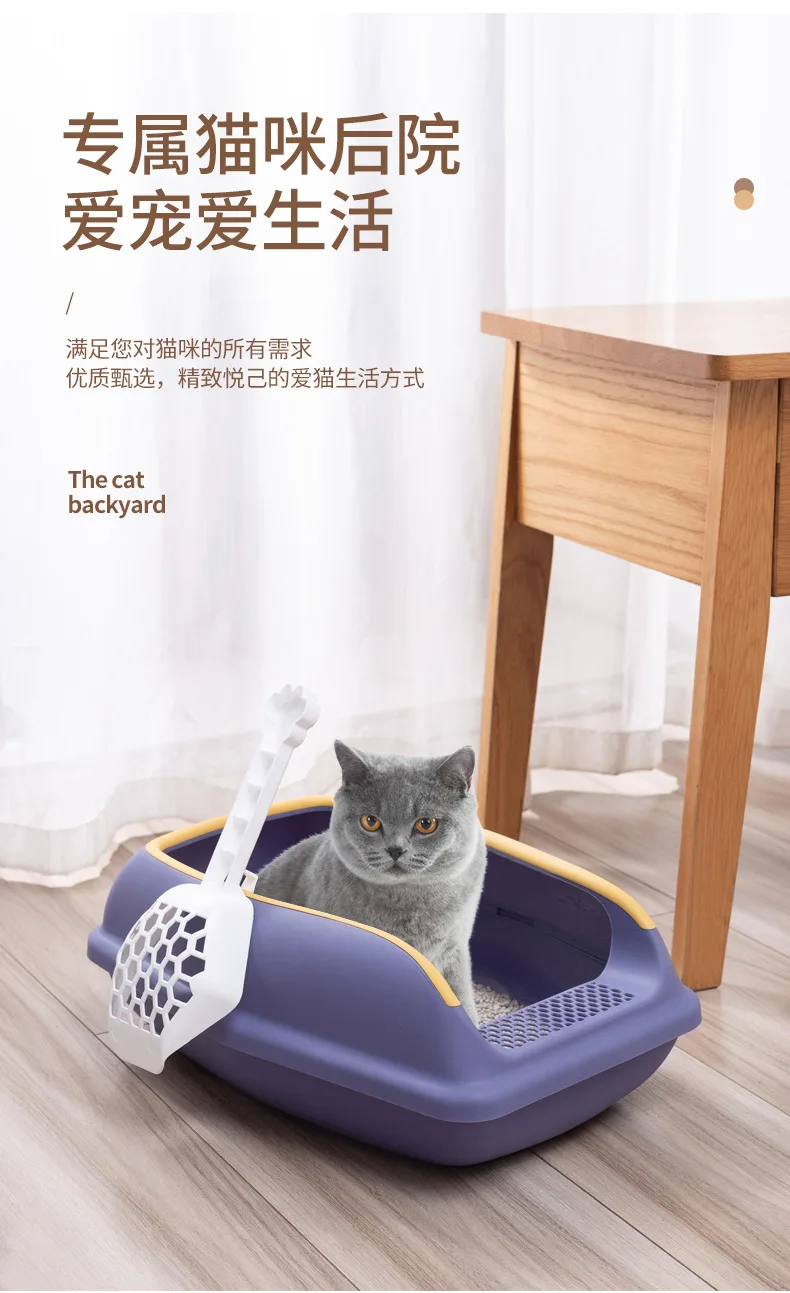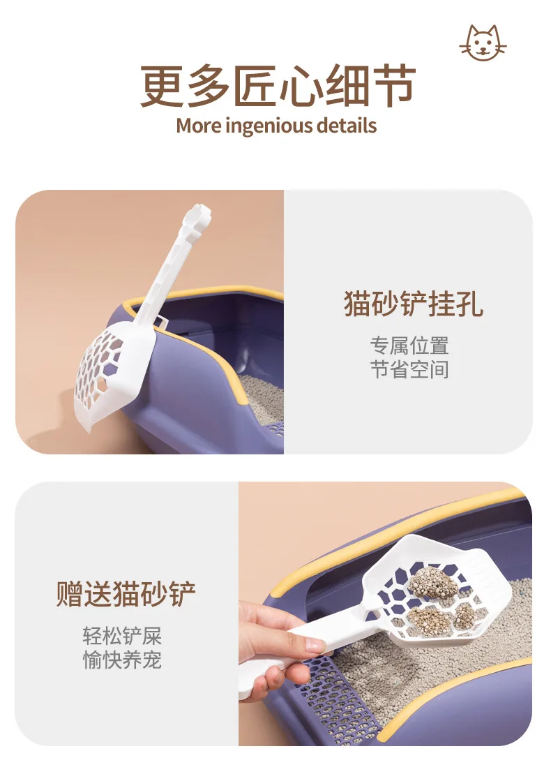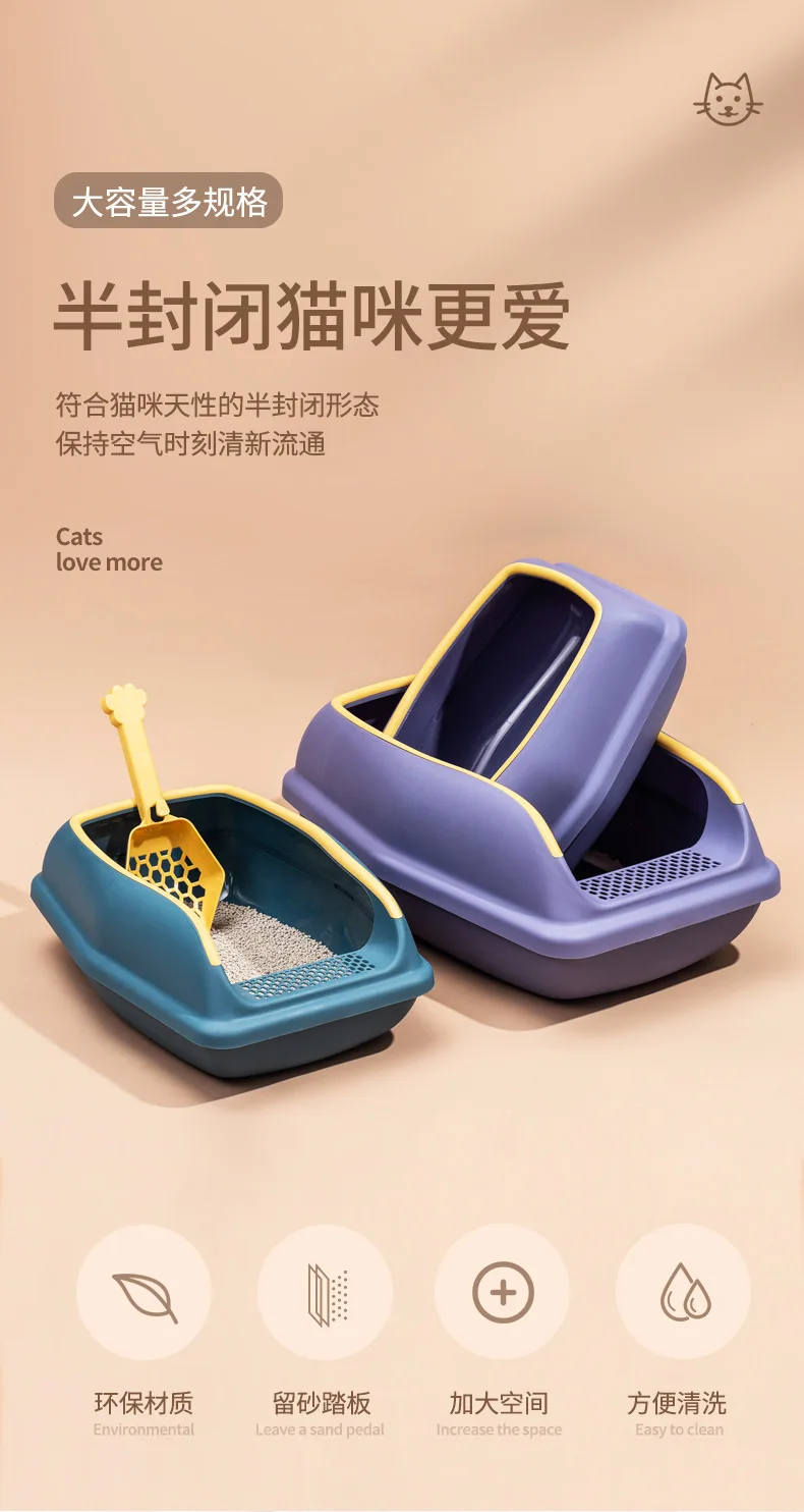 Caja de arena para gatos, inodoro antisalpicaduras para mascotas, nido abierto semicerrado con pala para arena para gatos, suministros para mascotas