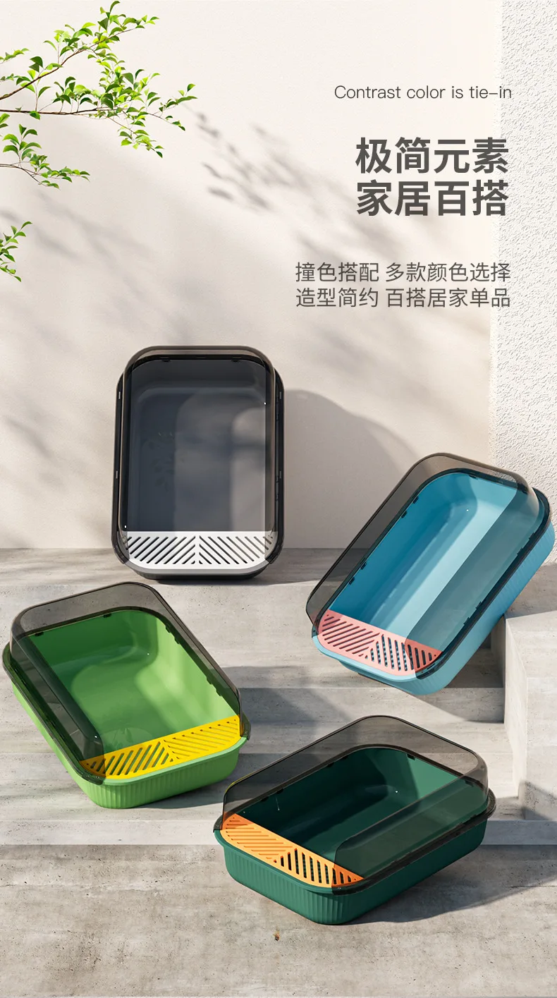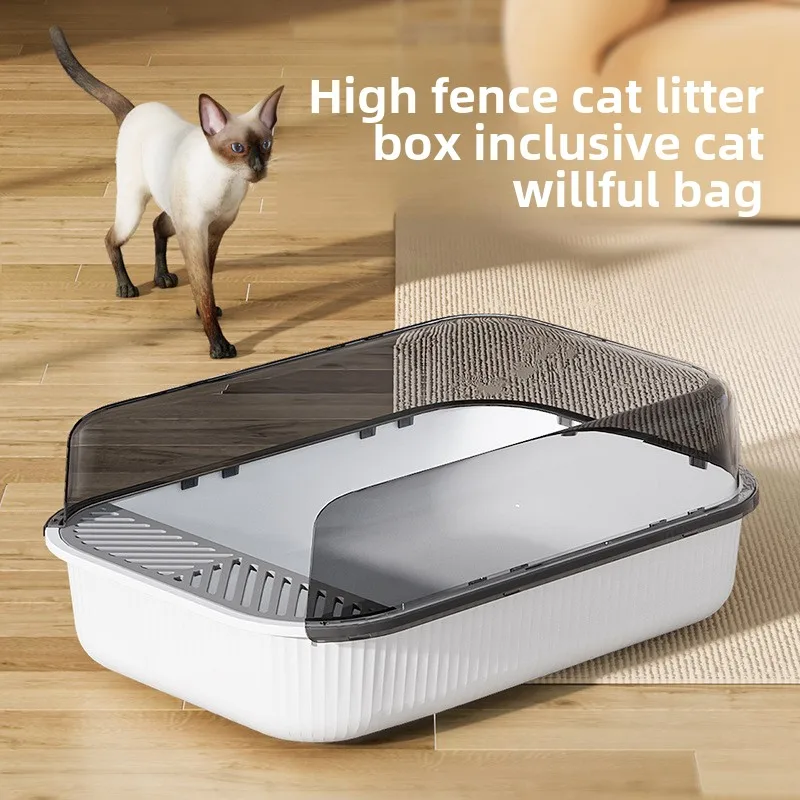 Caja de arena para gatos, inodoro Extra grande semicerrado a prueba de salpicaduras para mascotas, caja de arena para gatos Extra grande, suministros para mascotas