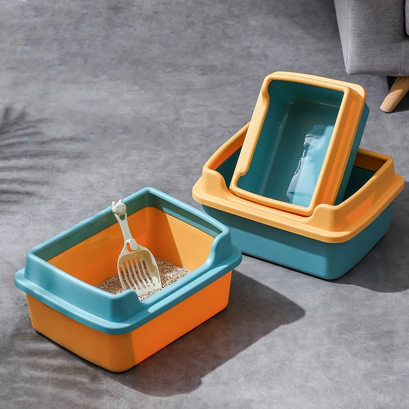 Caja de arena para gatos, inodoro semicerrado para mascotas, arenero limpio con pala gratis, casa para gatos transpirable, proveedores para gatos