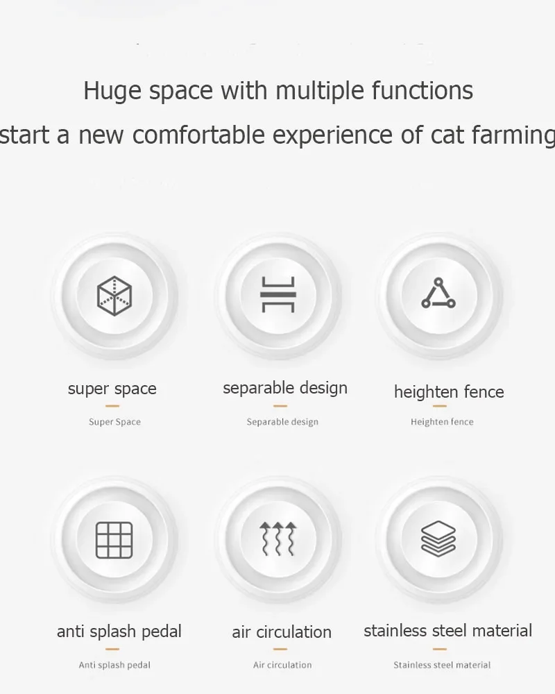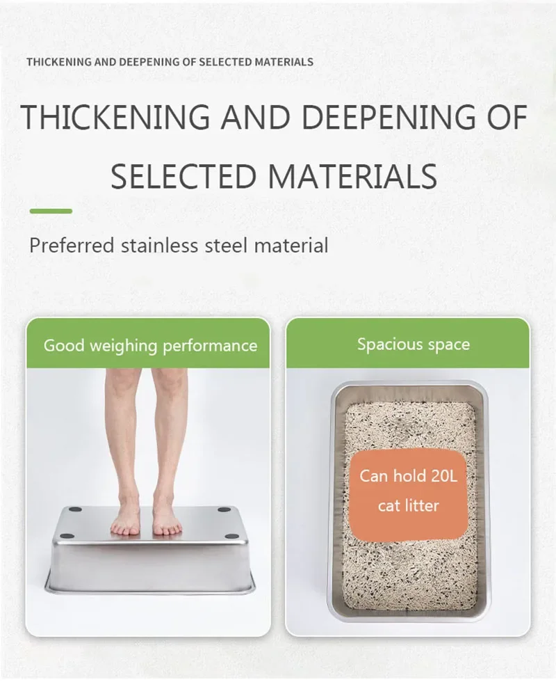 No absorbe olores: limpiar la caja de arena de acero inoxidable de paredes altas para gatos es muy fácil ya que los residuos se deslizan de la superficie lisa y antiadherente sin esfuerzo, sin dejar olores persistentes.El acero inoxidable duradero no se oxida ni se raya donde las bacterias pueden albergar como lo hacen la caja de arena de plástico, creando un ambiente limpio e higiénico para sus gatos.