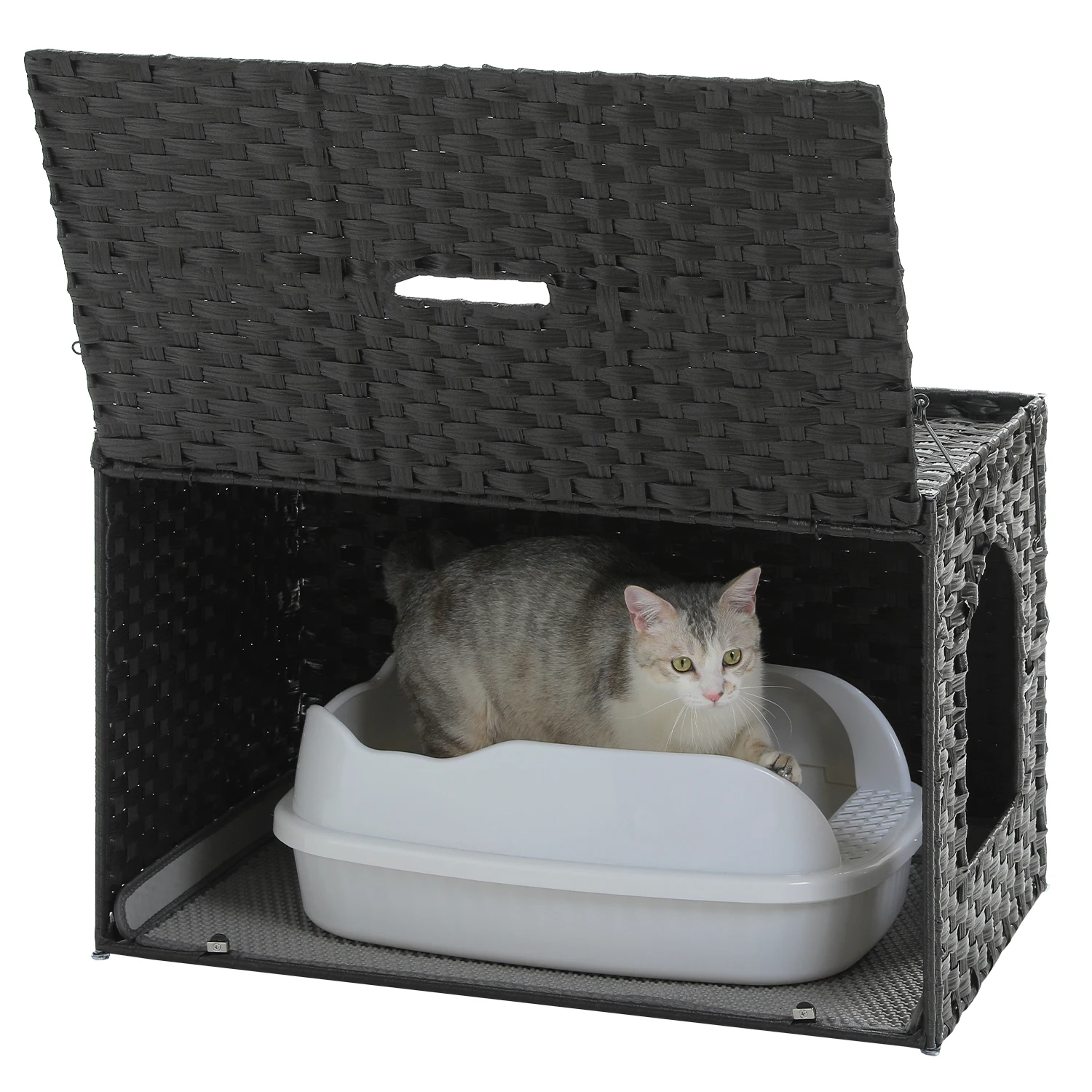 Nombre: Caja de arena para gatos de ratán con puerta más alta