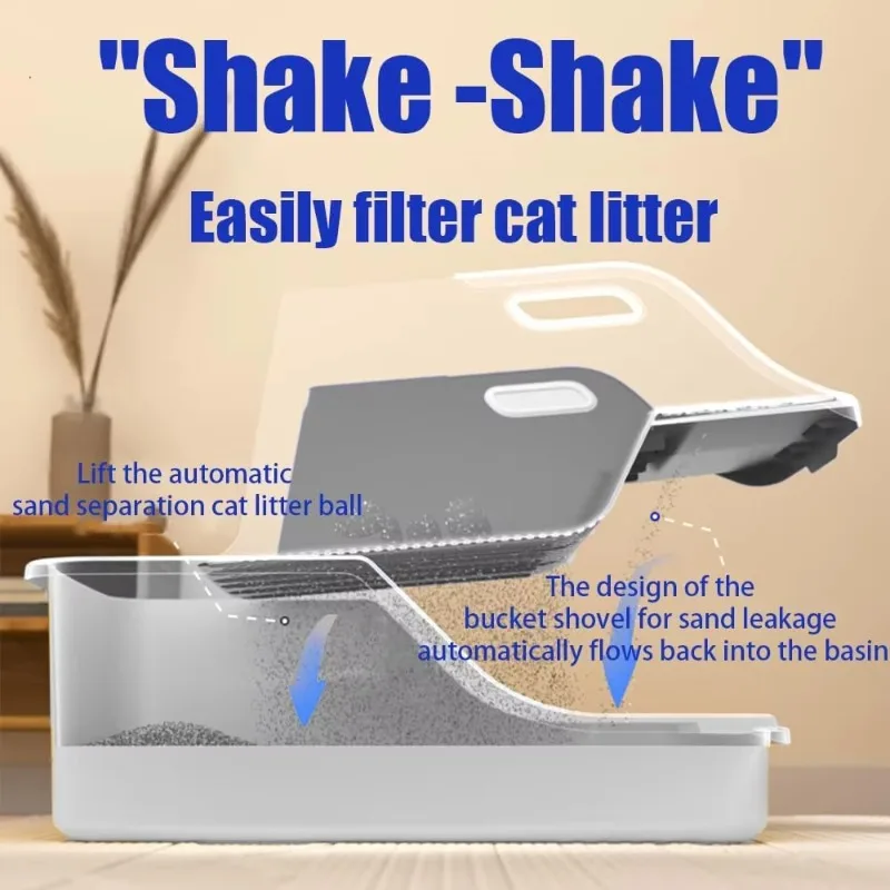 ! !! ¡NO COMPRE ESTE PRODUCTO! ! ! ¡Este realmente no vale la pena! Tengo 7 gatos en casa desde hace varios años y ya he probado alrededor de 5 tipos de areneros para gatos. Este es, con diferencia, el peor producto que he encontrado. Se veía bastante prometedor en las fotos, pero es mucho menos práctico de usar que todos los demás que he probado antes. Estoy utilizando arena aglomerante "Ever Clean" y, al retirar la parte interior, la arena al final de la caja se cae al fondo. Además, es necesario agitarlo bastante bien para que el líquido líquido que se envía gratis caiga por los agujeros de la parte inferior y, mientras lo hace, los grumos de orina se rompen y caen también y se mezclan con la arena limpia. Y para la fase final, cuando necesitas volver a colocar la parte móvil en la caja, es imposible insertarla a menos que uses una tercera caja para verter toda la arena ahí, juntar las dos partes de la caja de arena y volver a verter la arena en la caja.