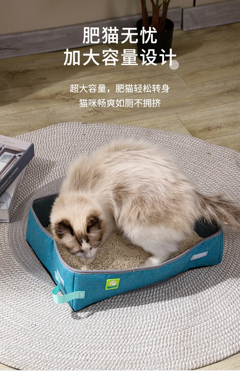 Caja de arena para gatos semicerrada, plegable, portátil, impermeable, tela Oxford, inodoro abierto para gatos, productos para mascotas, inodoro para mascotas