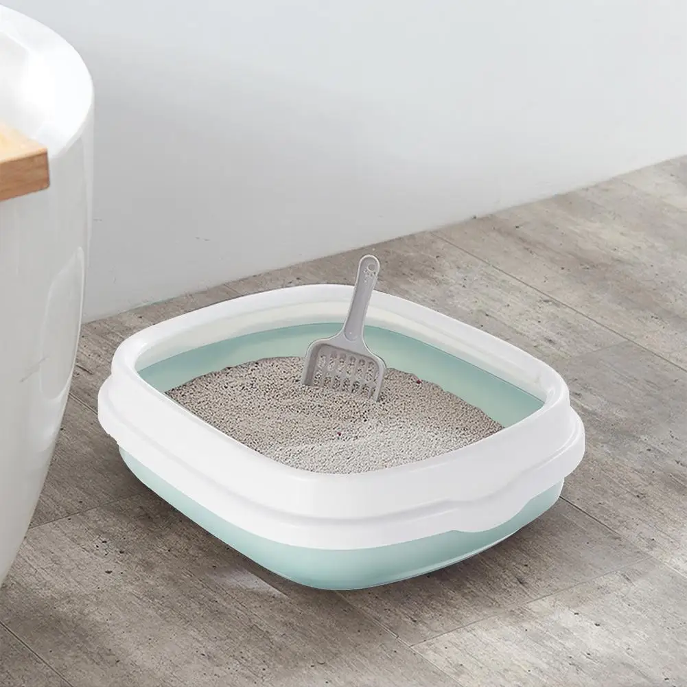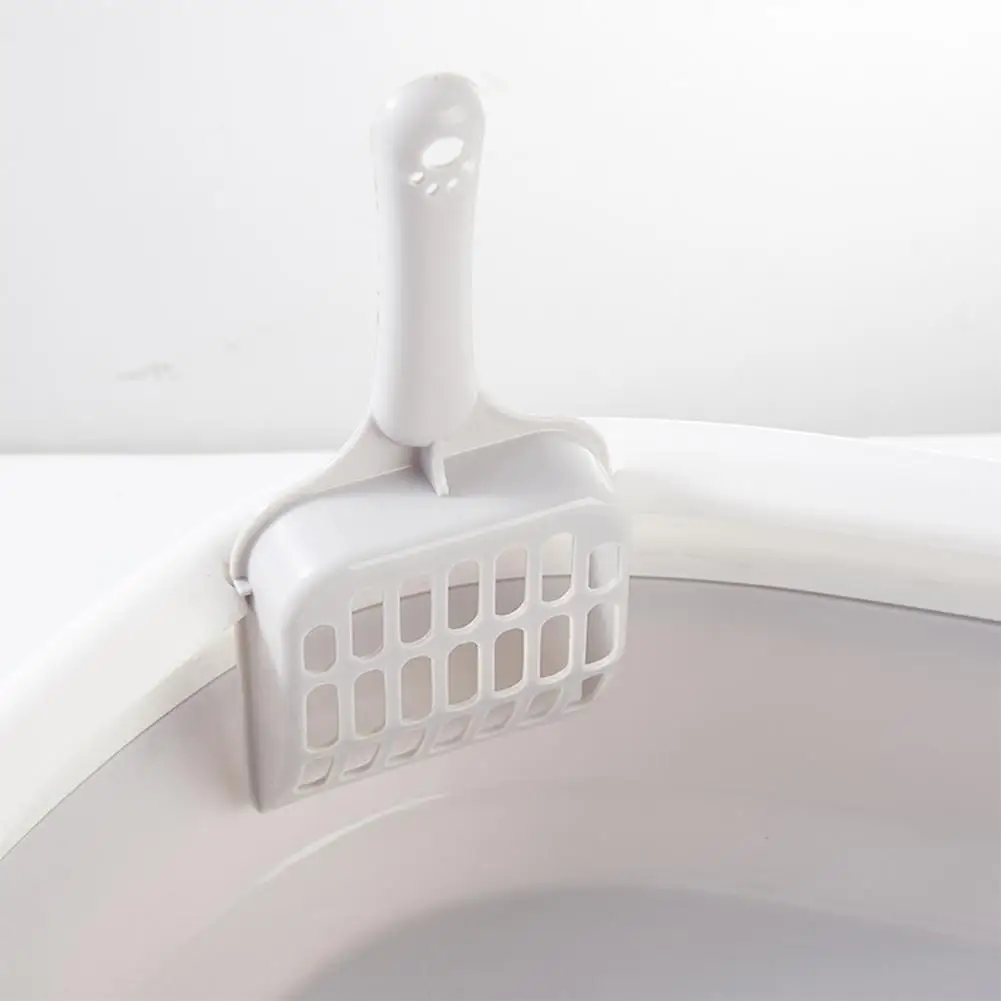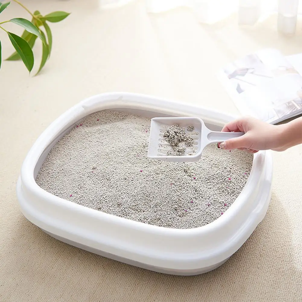Puntos destacados:1 、 conveniente para el almacenamiento: la buena caja de arena para gatos, bonita en forma, equipada con una cuchara para arena para gatos y con una ranura para arena para gatos, que es conveniente para el almacenamiento y no impide que el gato vaya al baño.