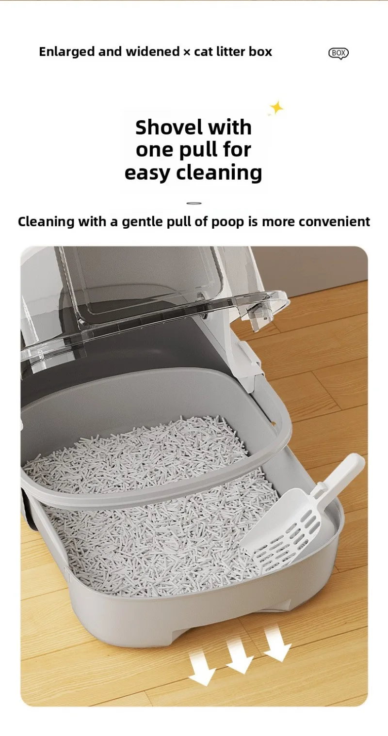 Caja de arena grande para gatos, inodoro abatible antiolor tipo cajonera, orinales de plástico antisalpicaduras, accesorios de limpieza de productos para mascotas
