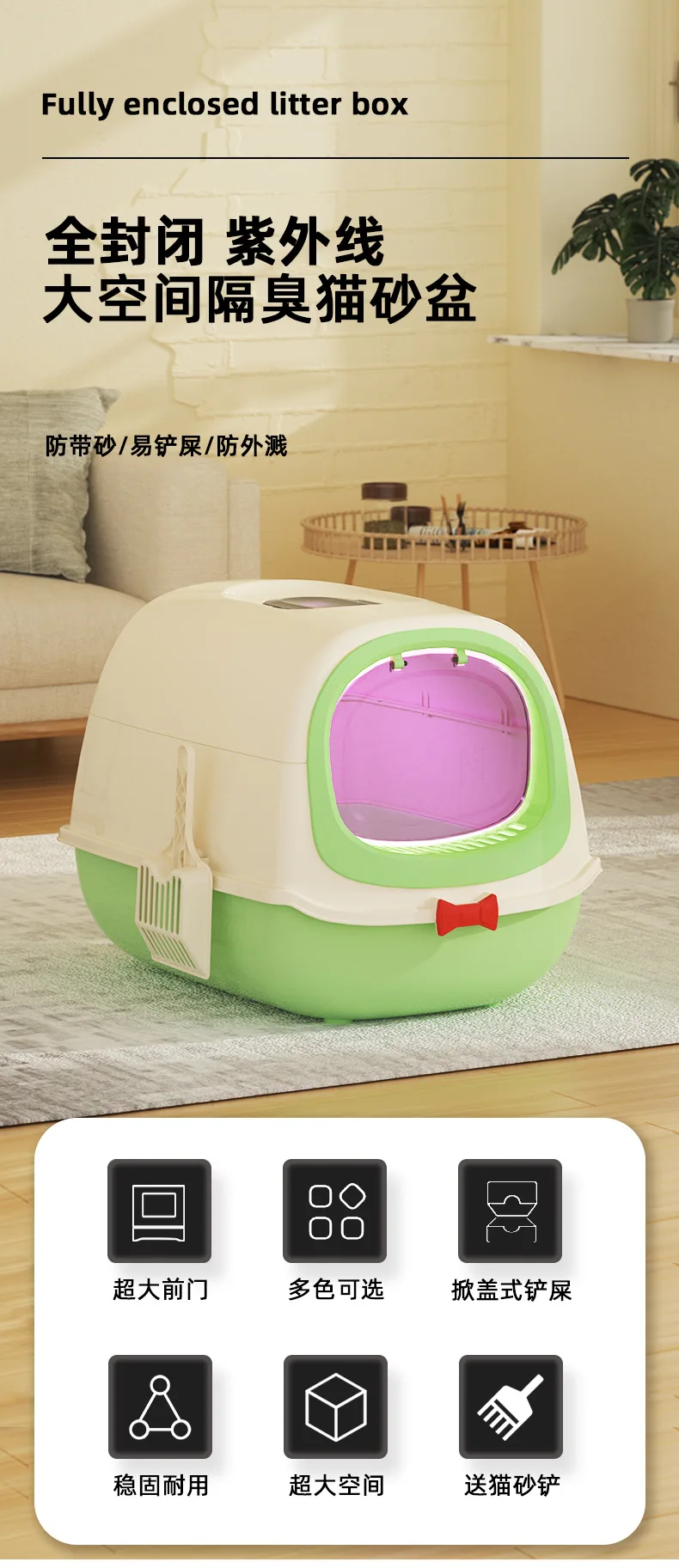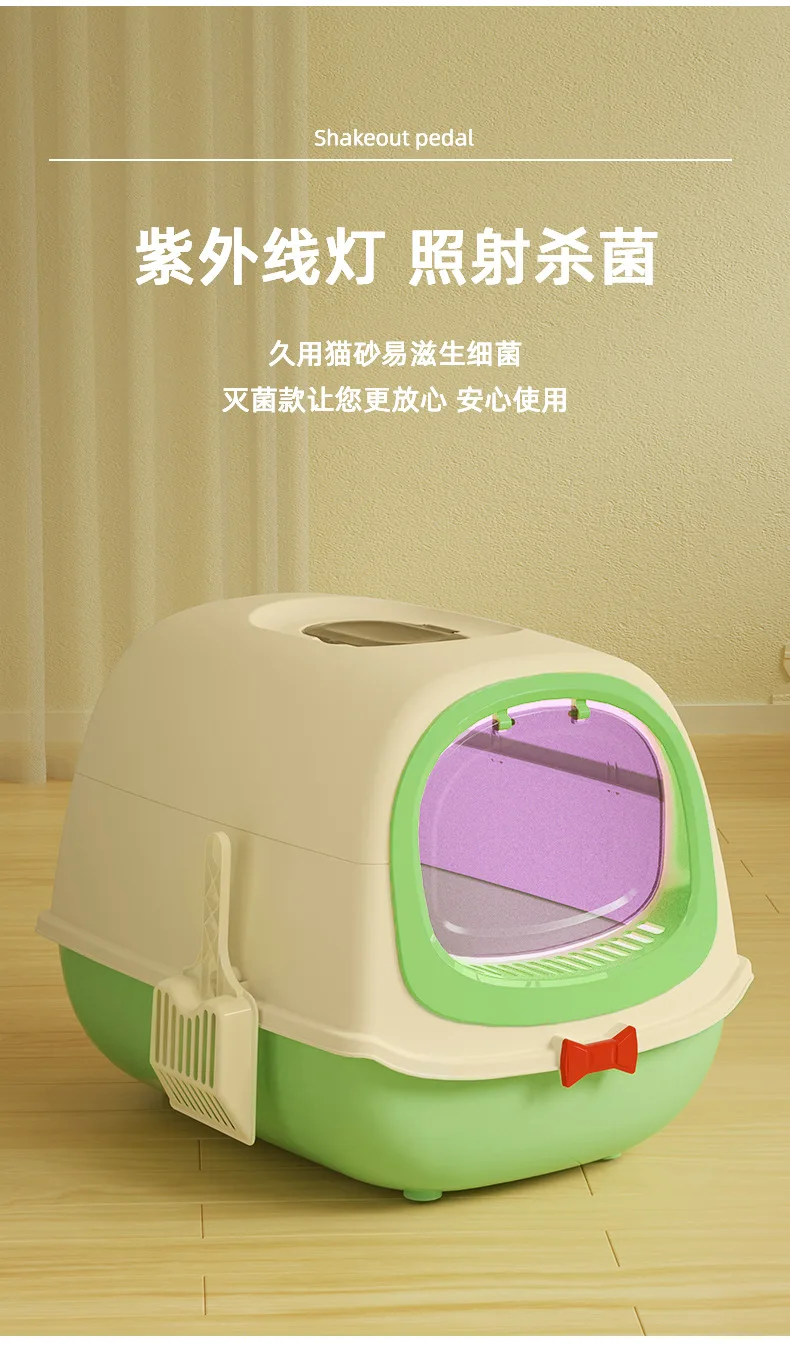 Caja de arena grande para gatos, inodoro abatible totalmente cerrado para mascotas, esterilización ultravioleta antisalpicaduras, lavabo fecal para gatos Extra grande