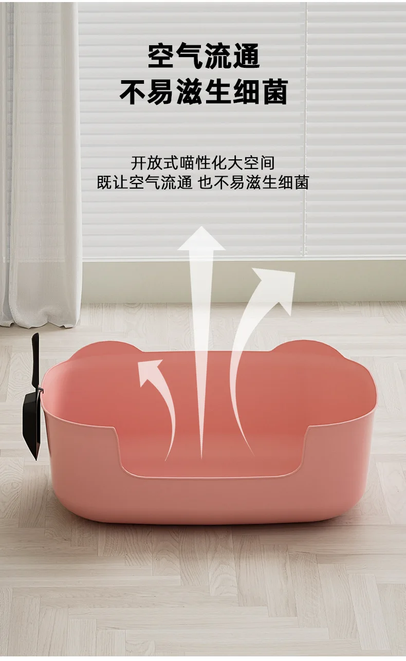 Caja de arena grande para gatos, inodoro semicerrado de alta capacidad para mascotas, antisalpicaduras, lavabo fecal abierto integrado para gatos