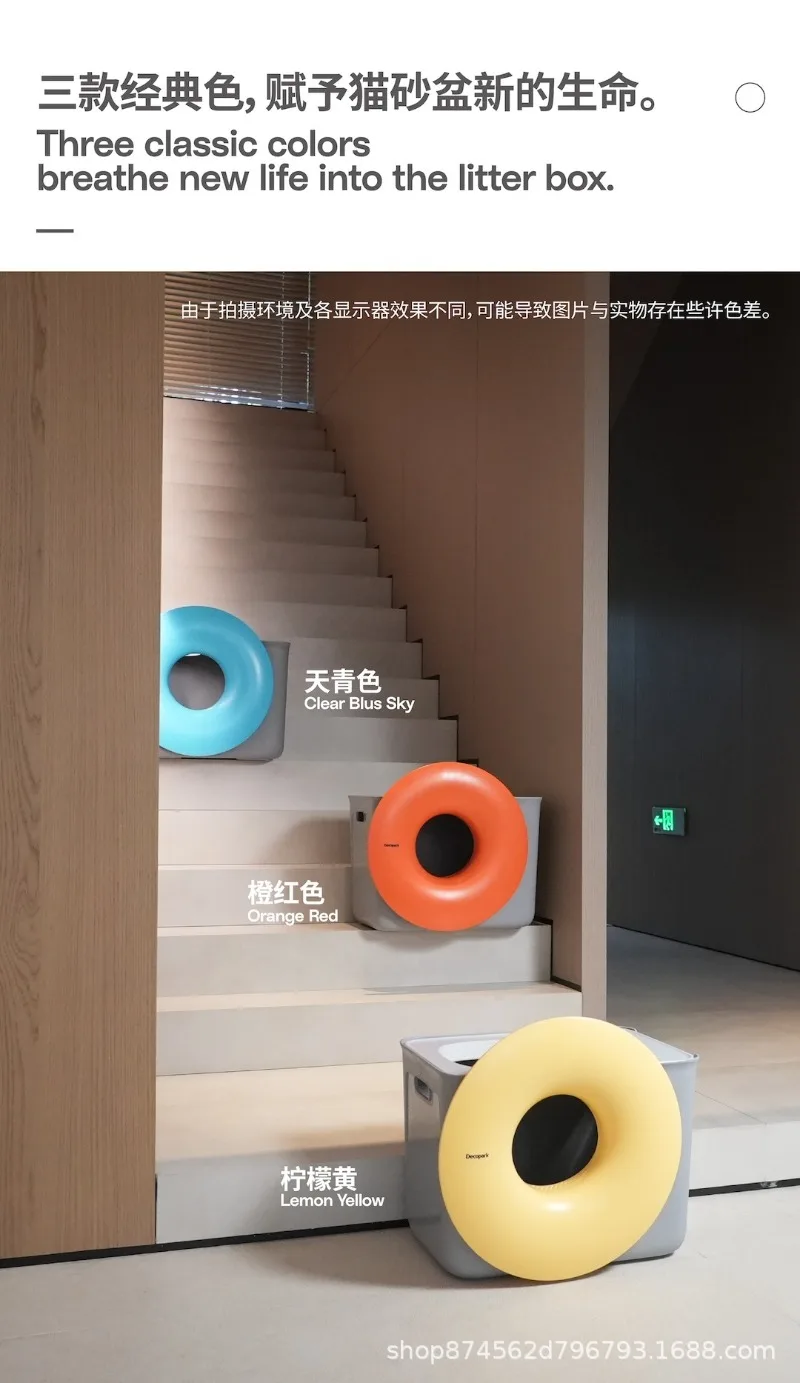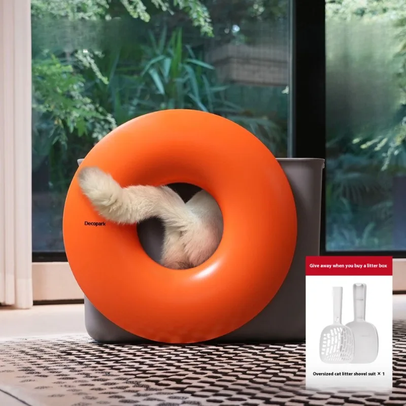 Caja de arena grande para gatos, semicerrada, con diseño de Donut, previene derrames, desodoriza el inodoro para gatos, productos para mascotas, accesorios de limpieza