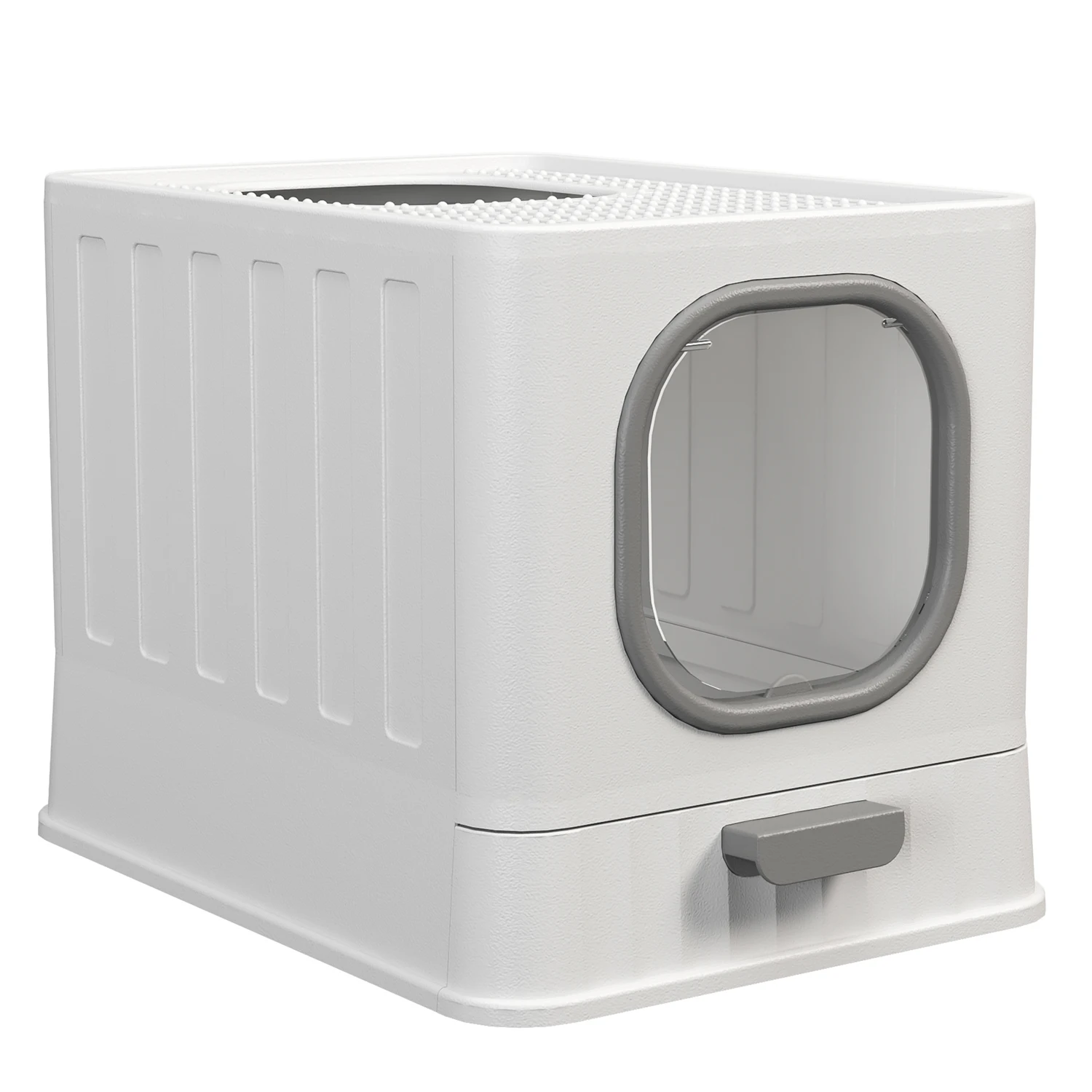 Gran caja de arena plegable para gatos con tapa y pala para arena, orinal cerrado, inodoro para gatitos para gatos de interior, control de olores, antisalpicaduras, suministros para mascotas
