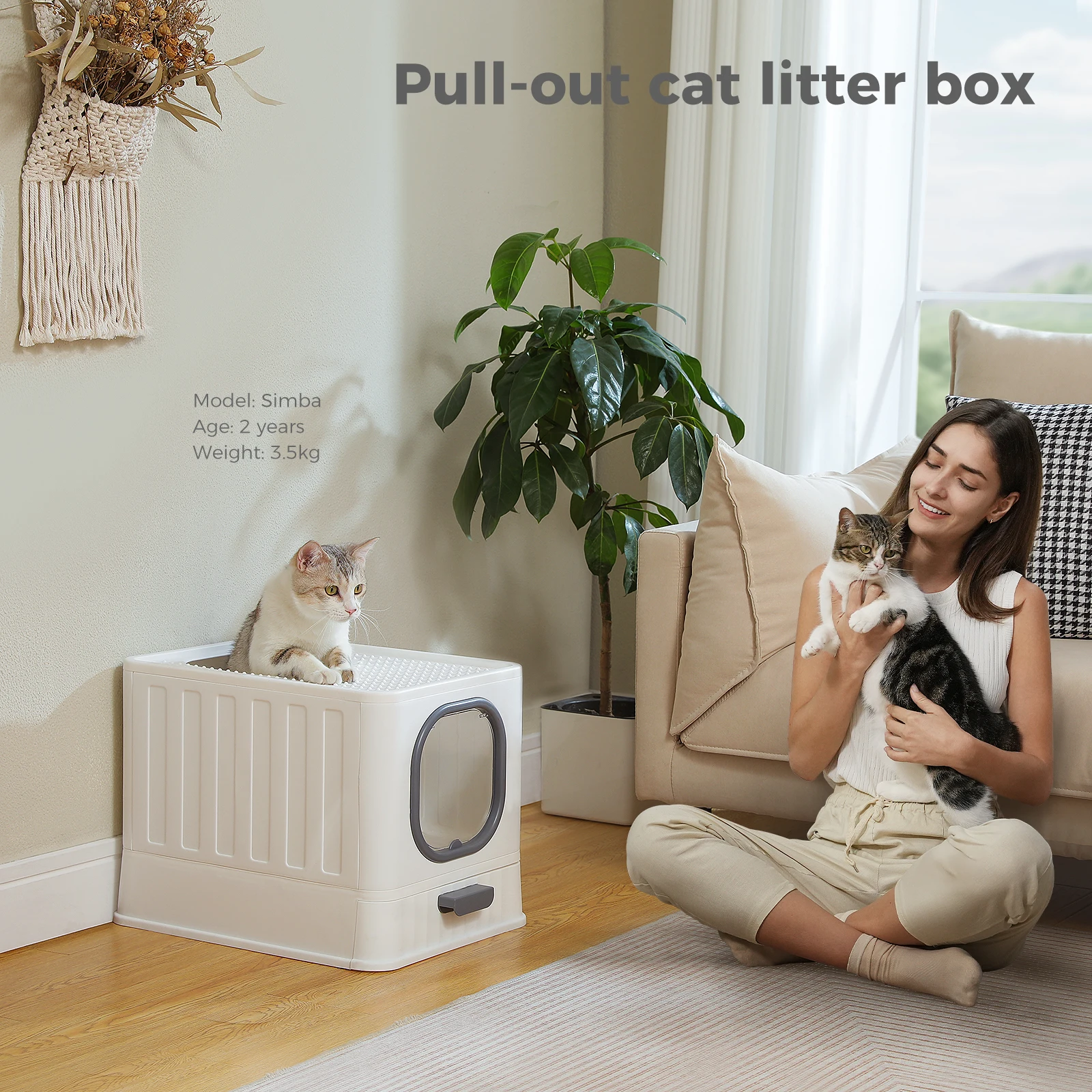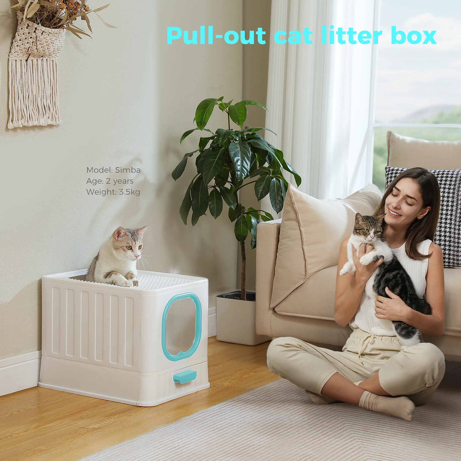 3. Diseño de cajón extraíble:El diseño de apertura completa facilita recoger, limpiar y agregar arena para gatos.
