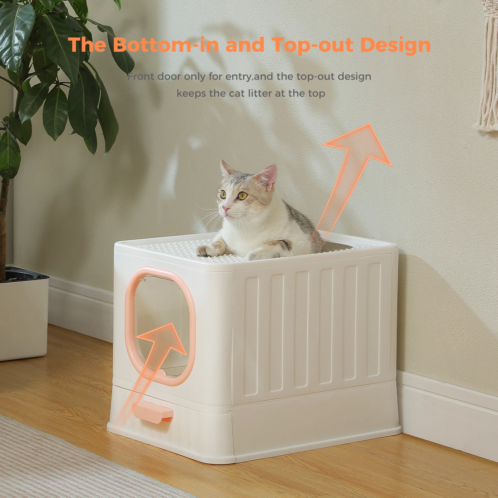 Caja de arena grande para gatos con tapa, caja de arena estándar con pala para arena para gatos, inodoro plegable para gatos para interiores, fácil de limpiar, tapa abierta