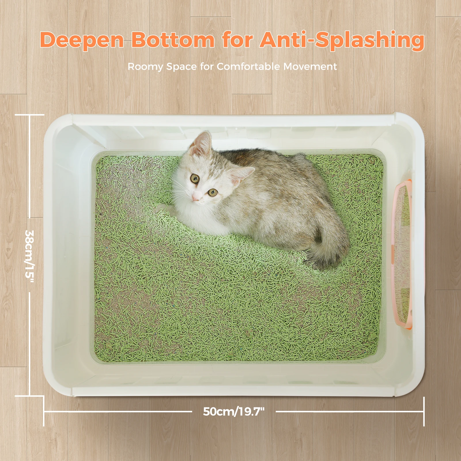 4.Facilidad de uso:La puerta con bisagras permite un fácil acceso a su gato mientras mantiene contenido la caja de arena, lo que reduce el desorden y la dispersión.