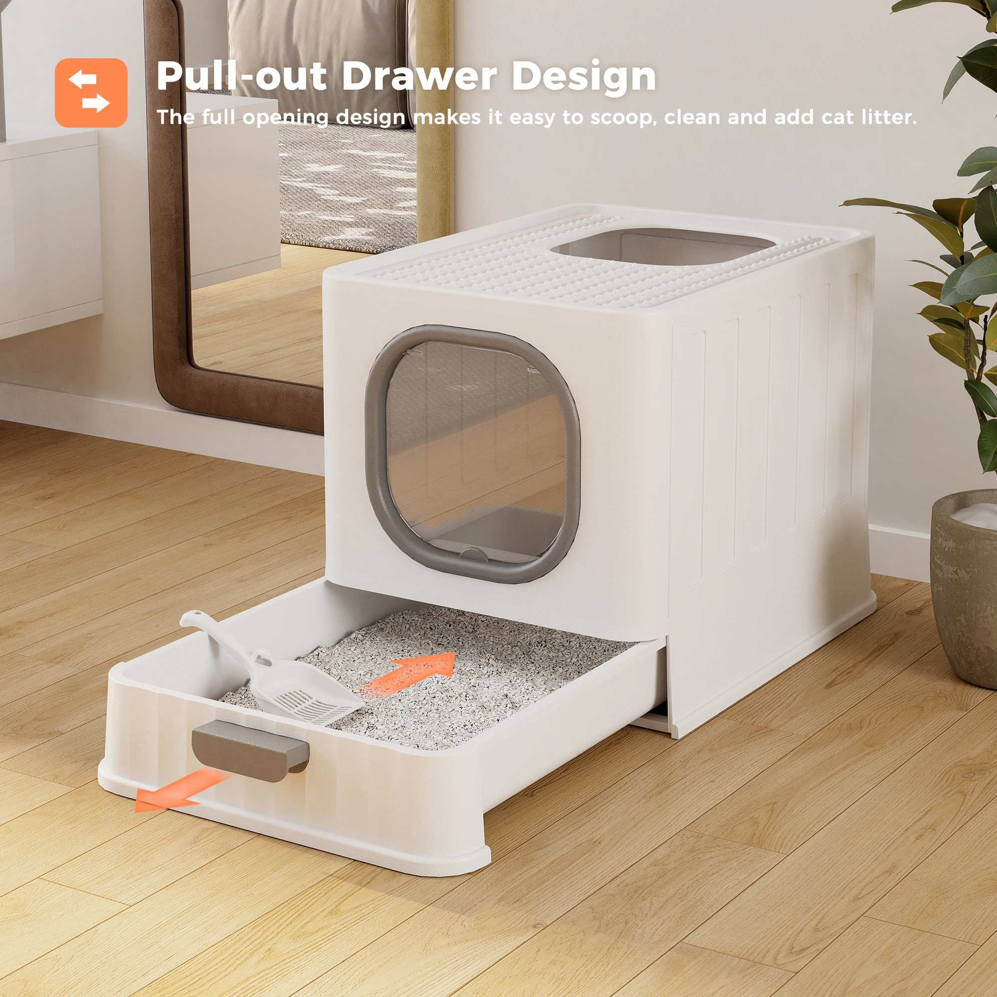 3. Diseño de cajón extraíble:El diseño de apertura completa hace que sea fácil recoger, limpiar y agregar arena para gatos.