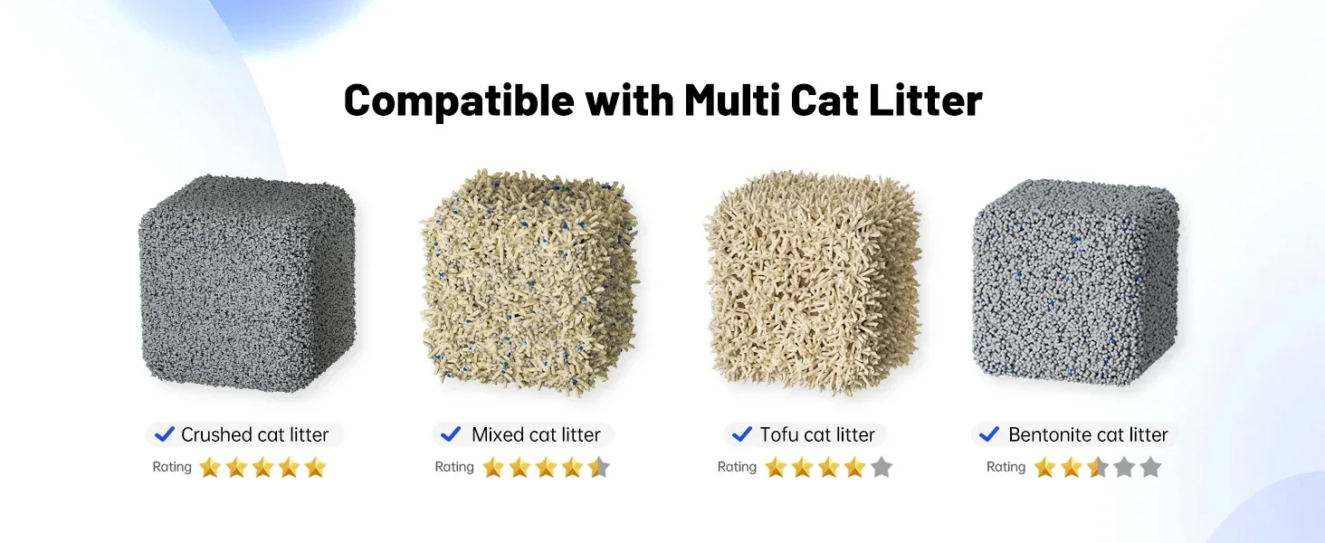 Control avanzado de olores: mantenga su hogar fresco: con el desodorante E20, esta caja de arena con control de olores neutraliza los olores desagradables, manteniendo su espacio fresco.Compatible con arena para gatos eco tofu de bajo seguimiento y arena para gatos grumosas, proporciona una absorción superior de la humedad y una eliminación de olores.