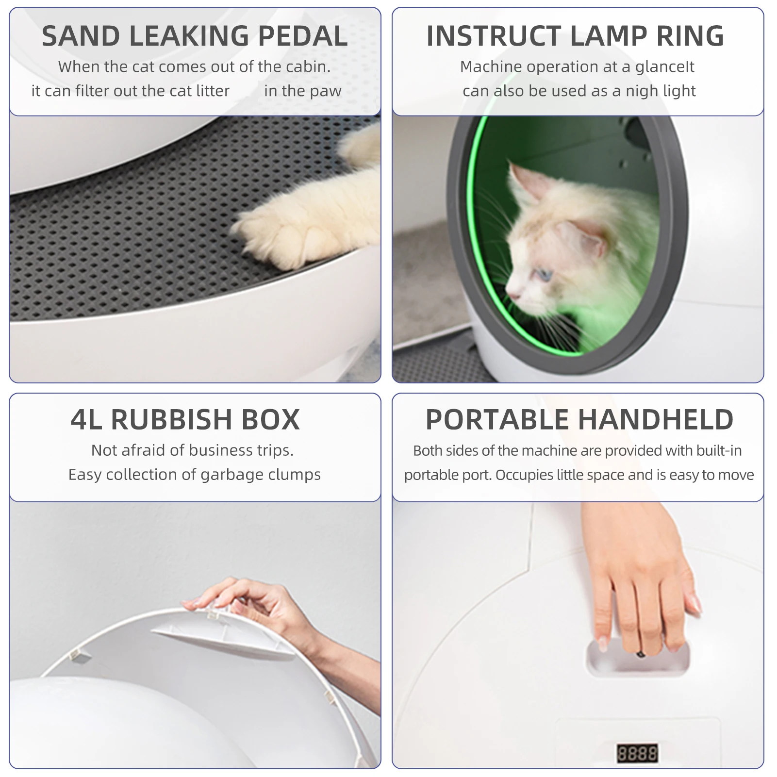 El gato puede pedalear fácilmente en la cabina de arena.