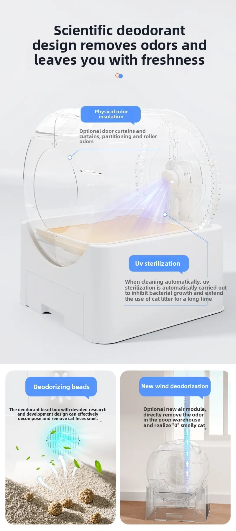 Caja de arena inteligente cerrada grande para gatos, desodorante de limpieza automática a prueba de salpicaduras, inodoro para gatos, productos para mascotas, suministros de limpieza