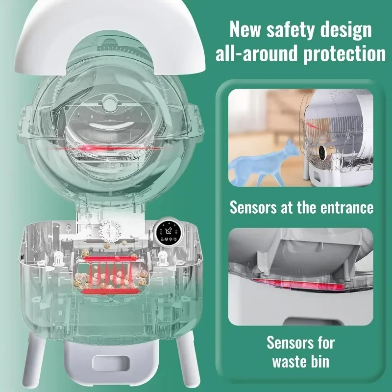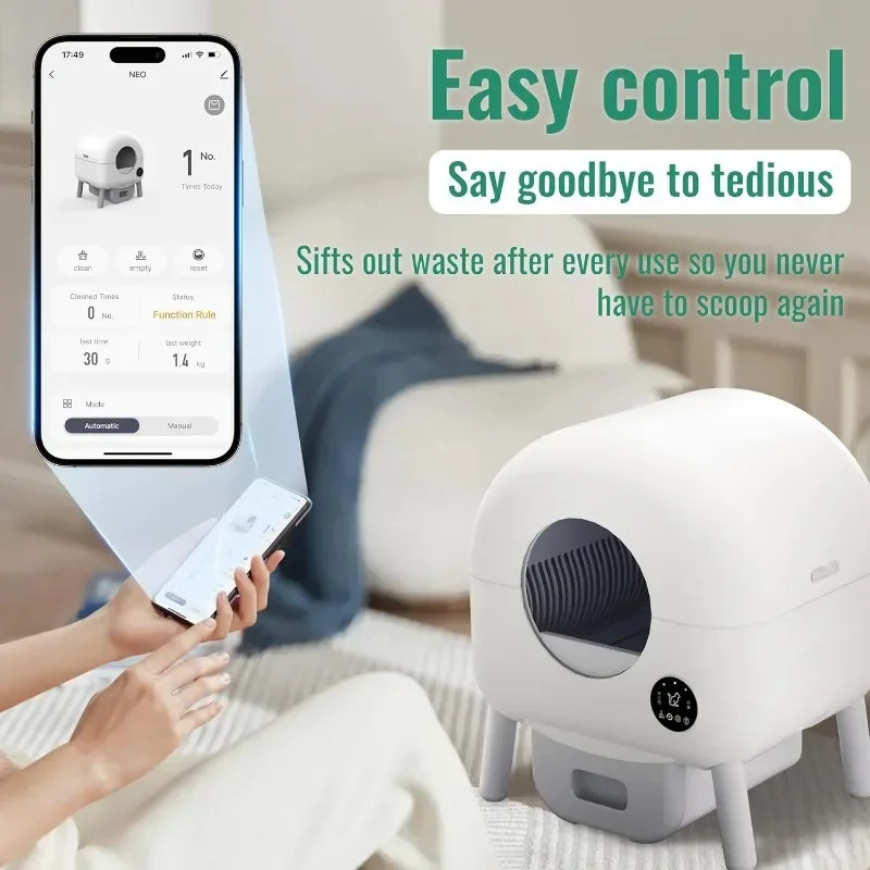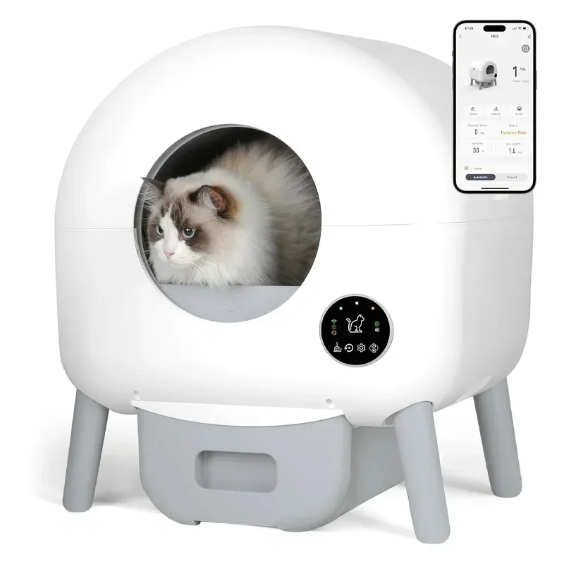 Caja de arena inteligente para gatos, autolimpieza automática, gran espacio, antisalpicaduras, bandeja de arena para inodoro para gatos con Control por aplicación