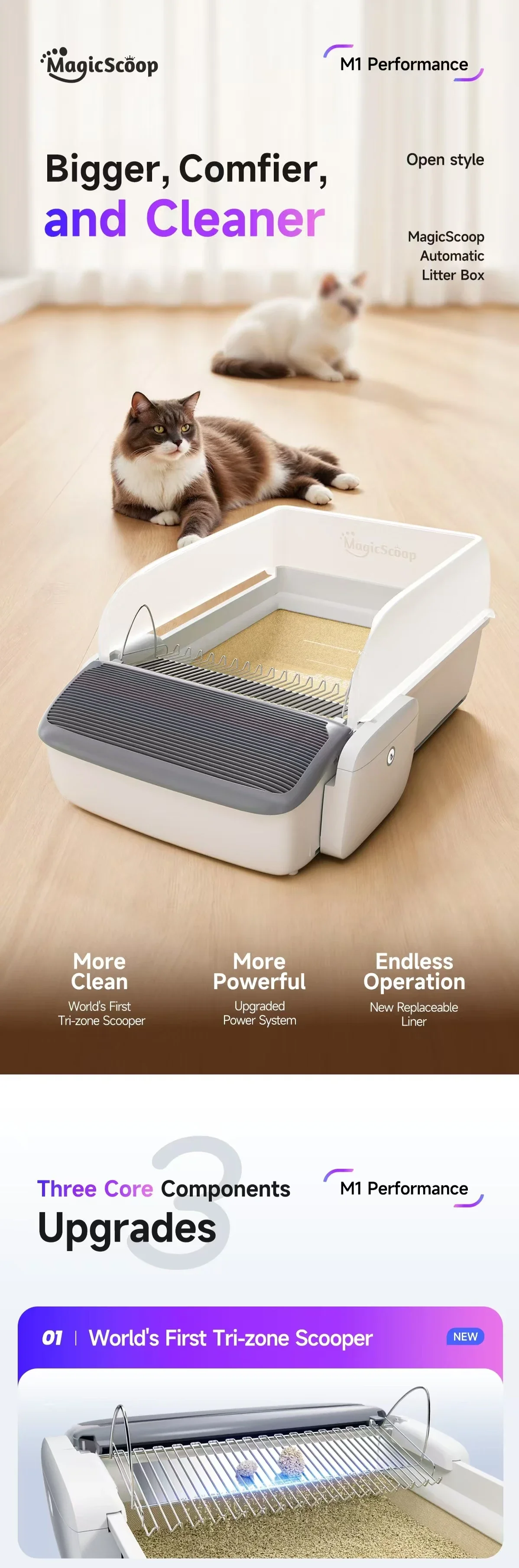 Caja de arena inteligente para gatos, orinales para gatos autolimpiantes automáticos, inodoro abierto semicerrado para gatos, suministros para mascotas de gran tamaño