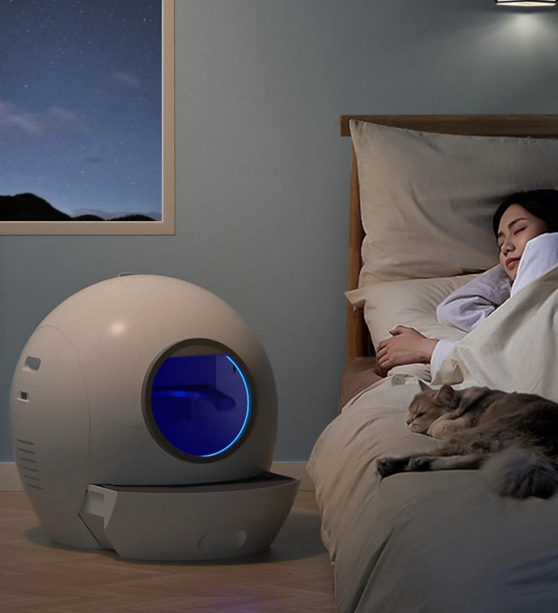 Descripción:Inodoro automático para gatos, gran limpieza antitirones, esterilización ultravioleta, antisalpicaduras, control WIFI, caja de arena inteligente para gatos
