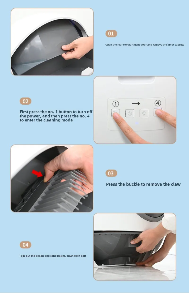 Después de los defectos del gato, la función de esterilización ultravioleta se activa automáticamente para evitar que el gato infecte las bacterias en las heces.