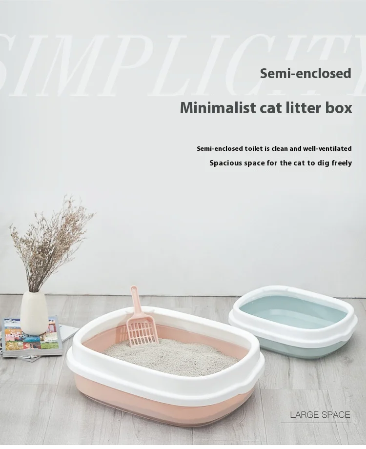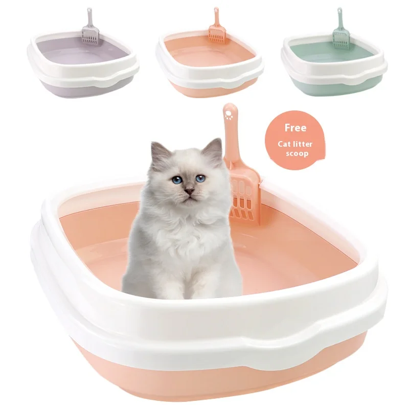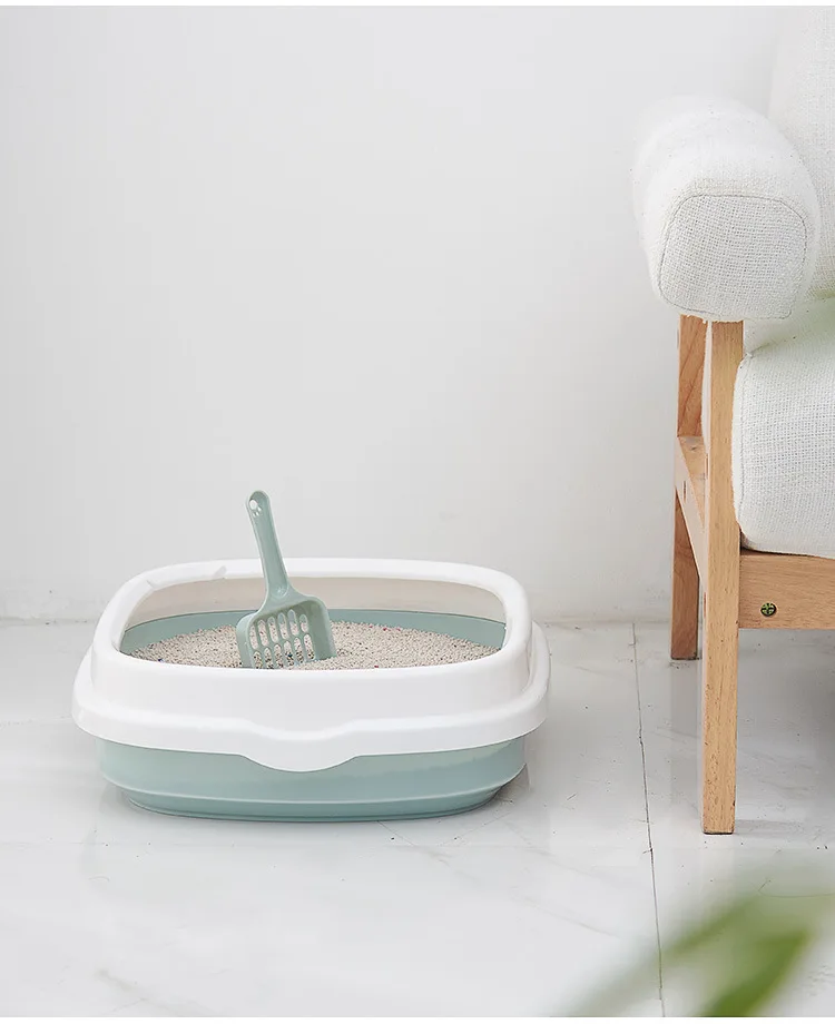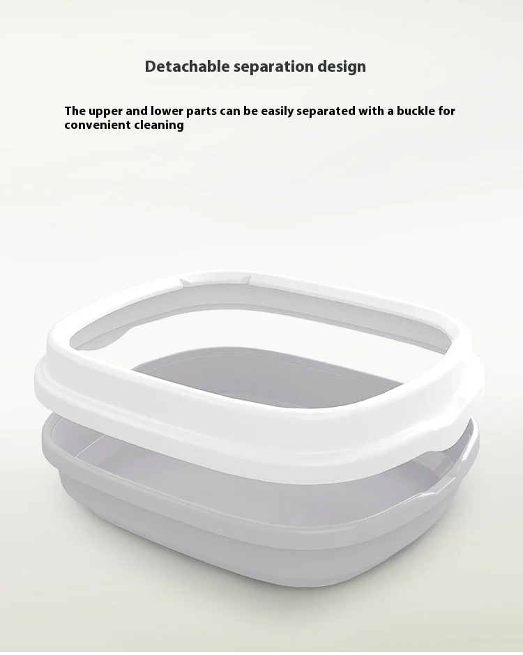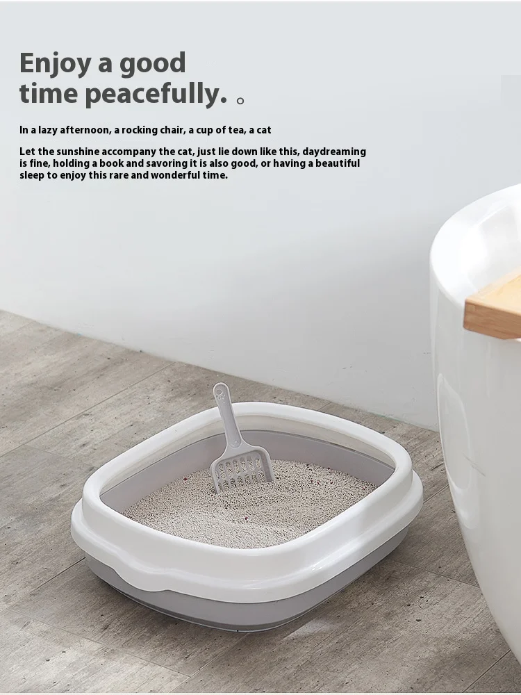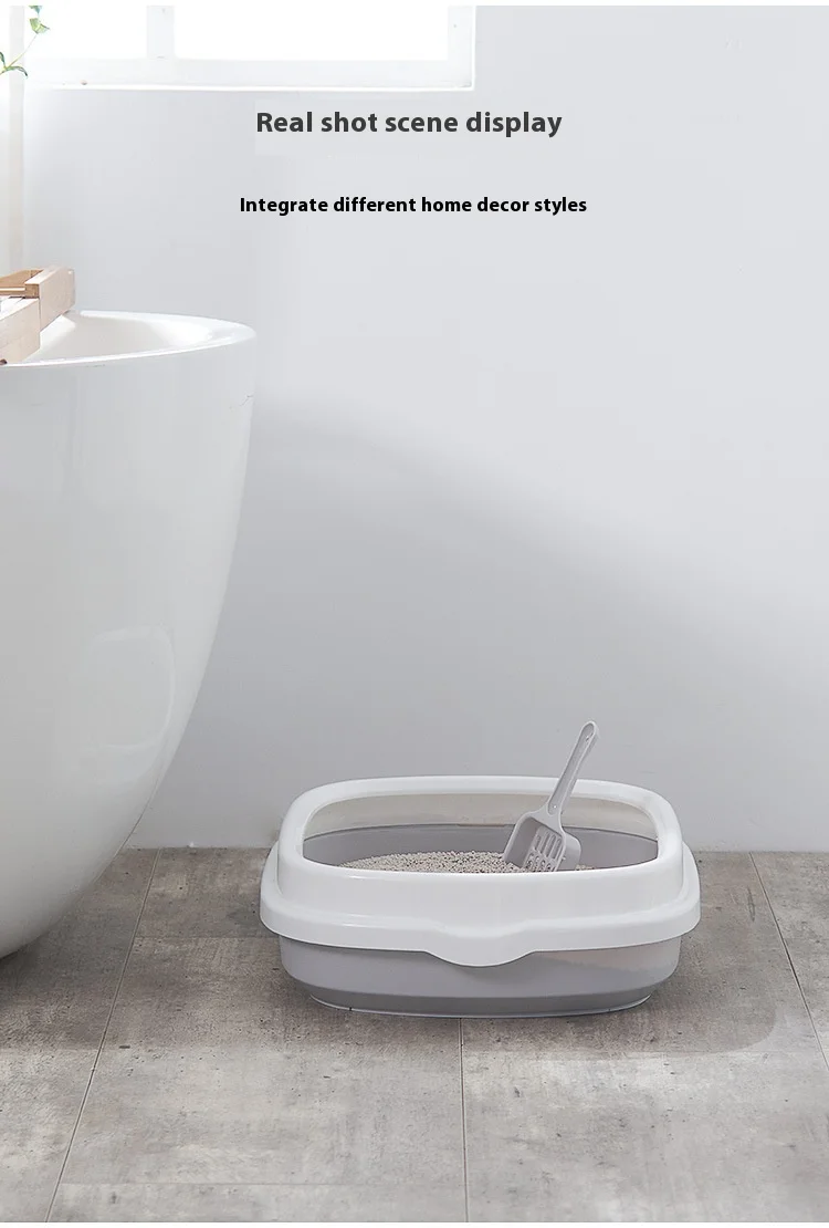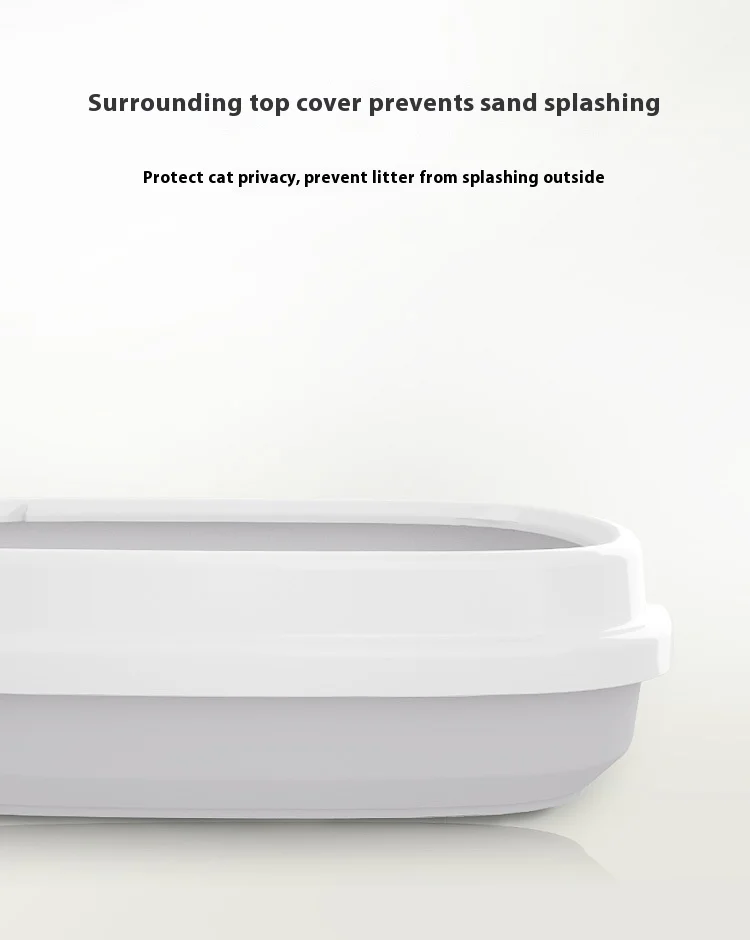 Caja de arena pequeña para gatos, bandeja cubierta antiseguimiento de plástico PP resistente con forma ovalada y borde elevador