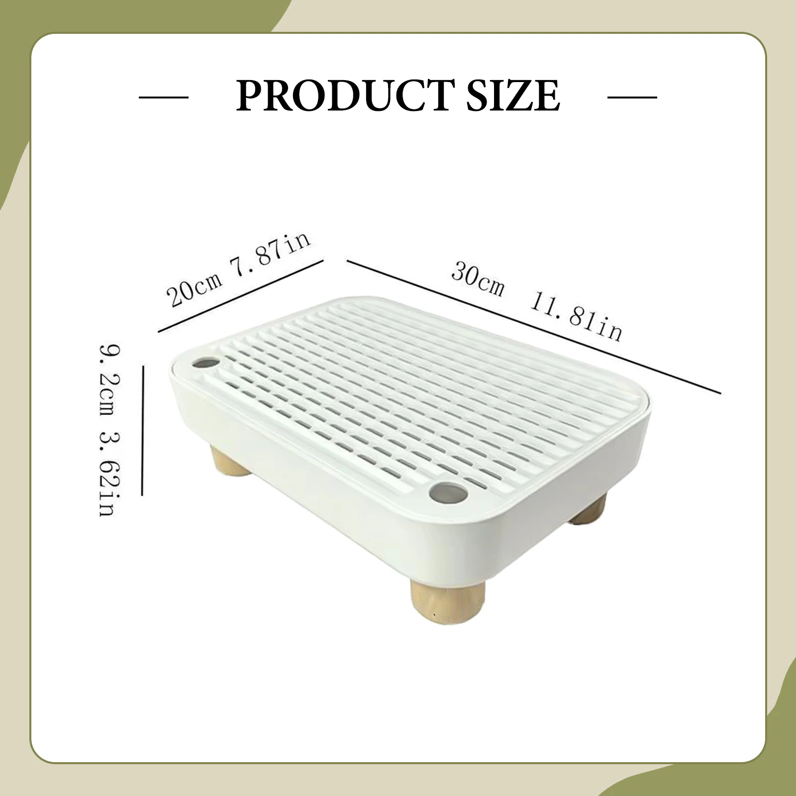 【Antideslizante】: Cuenta con base antideslizante con patas de madera y almohadillas antideslizantes para una colocación segura en pisos de baldosas o madera; La estructura elevada promueve la corriente del aire para mantenerse seca en la parte inferior.