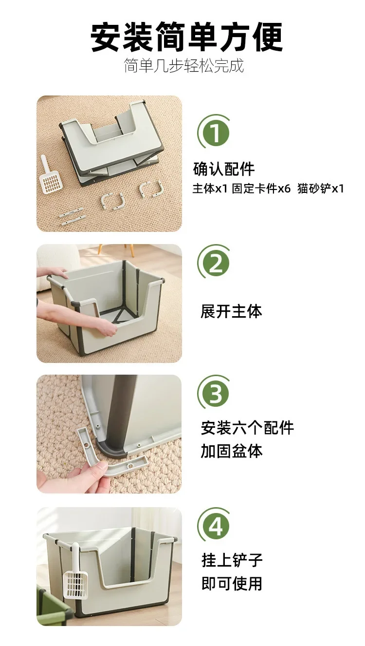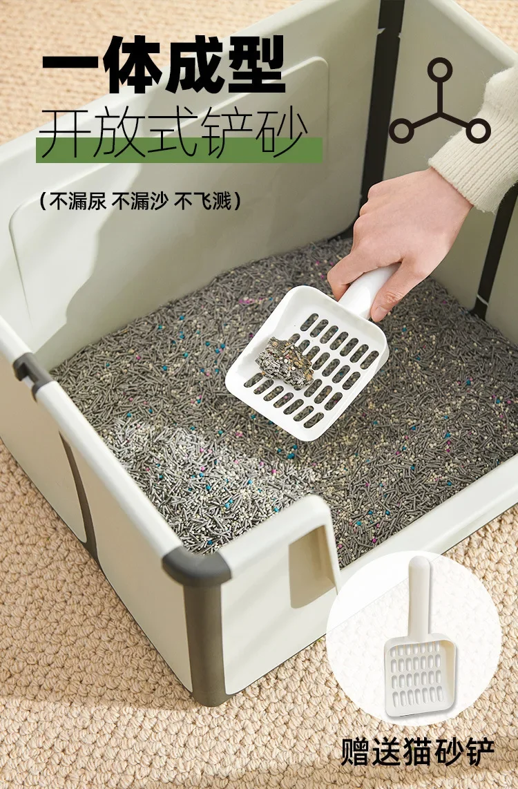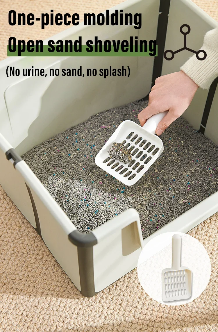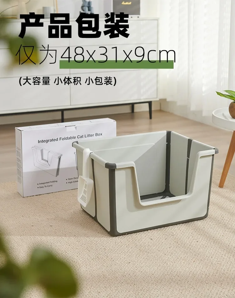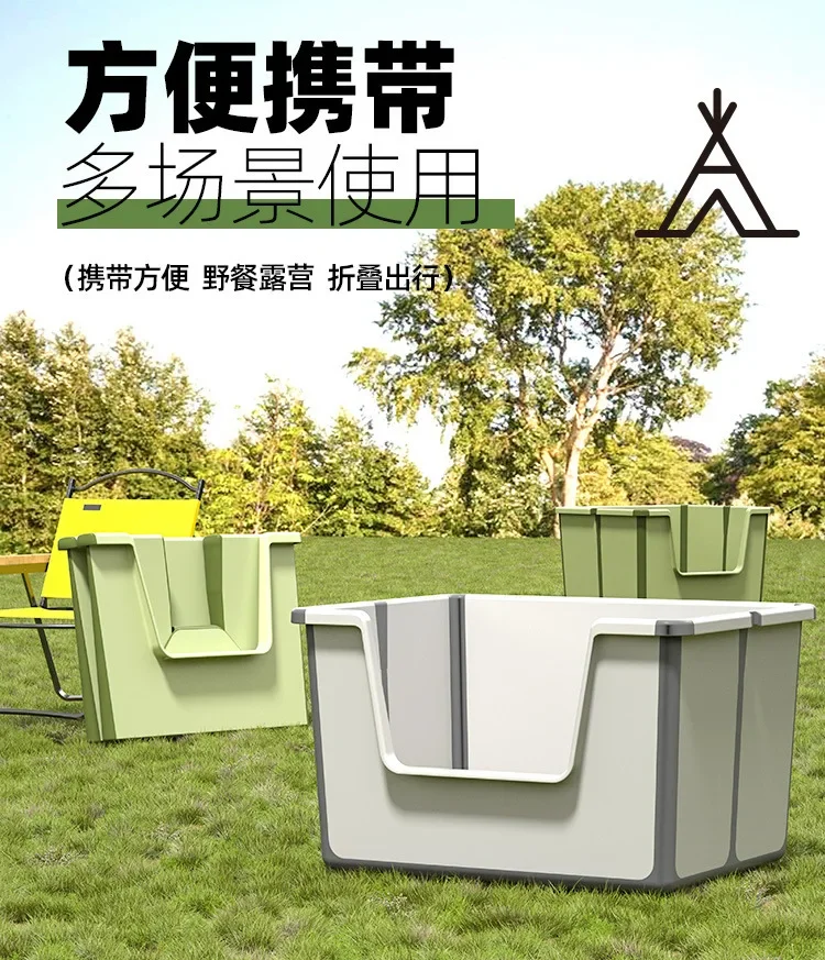 Caja de arena plegable para gatos XXL portátil, control de olores y diseño a prueba de salpicaduras con paredes altas, inodoro plegable para gatos de viaje