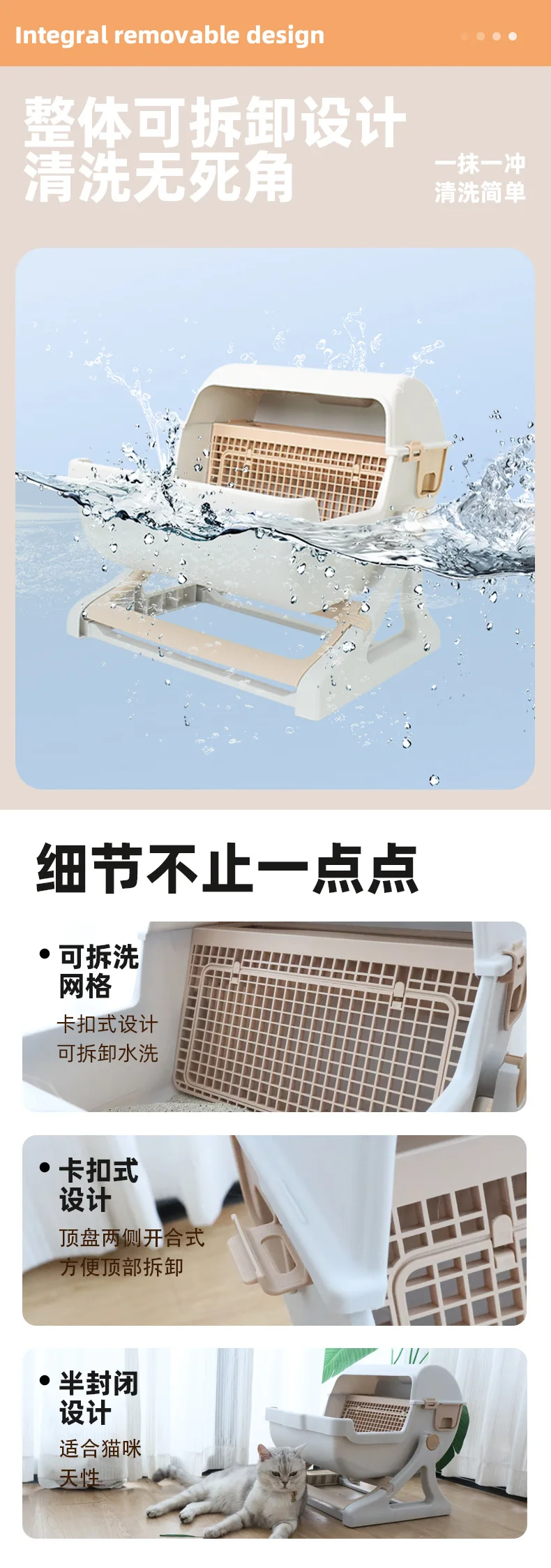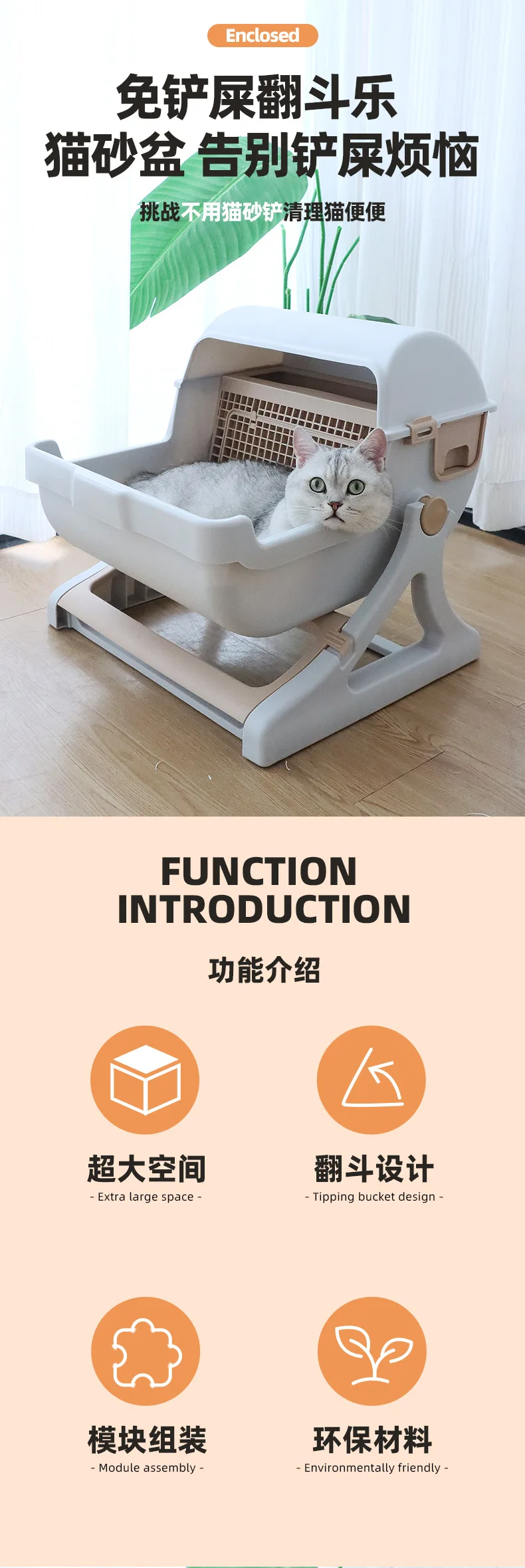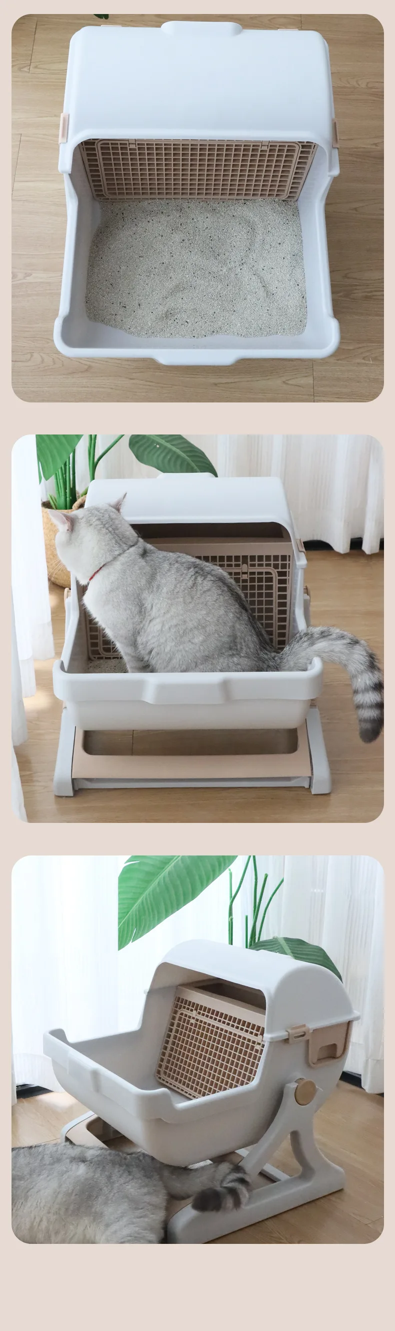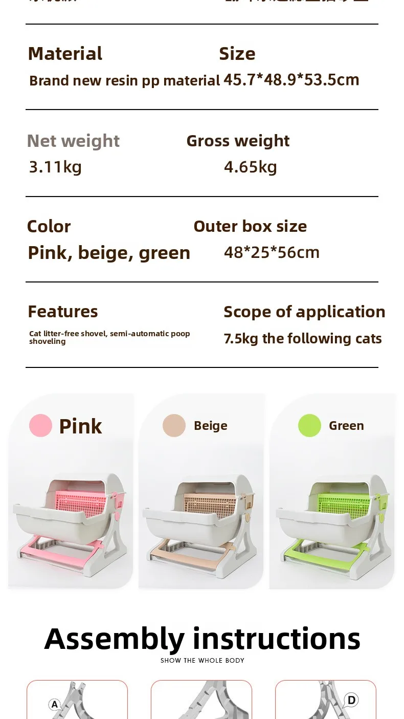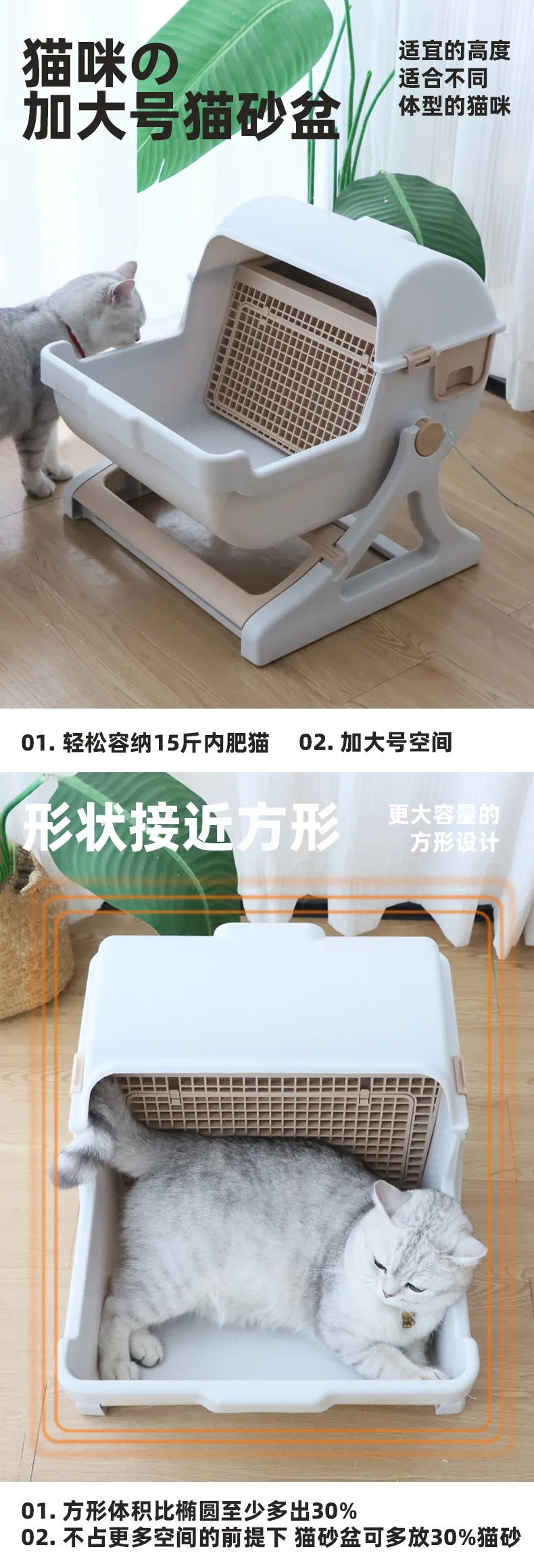 Caja de arena semiautomática para gatos, inodoro semicerrado de gran tamaño antisalpicaduras para mascotas, productos para mascotas perezosos