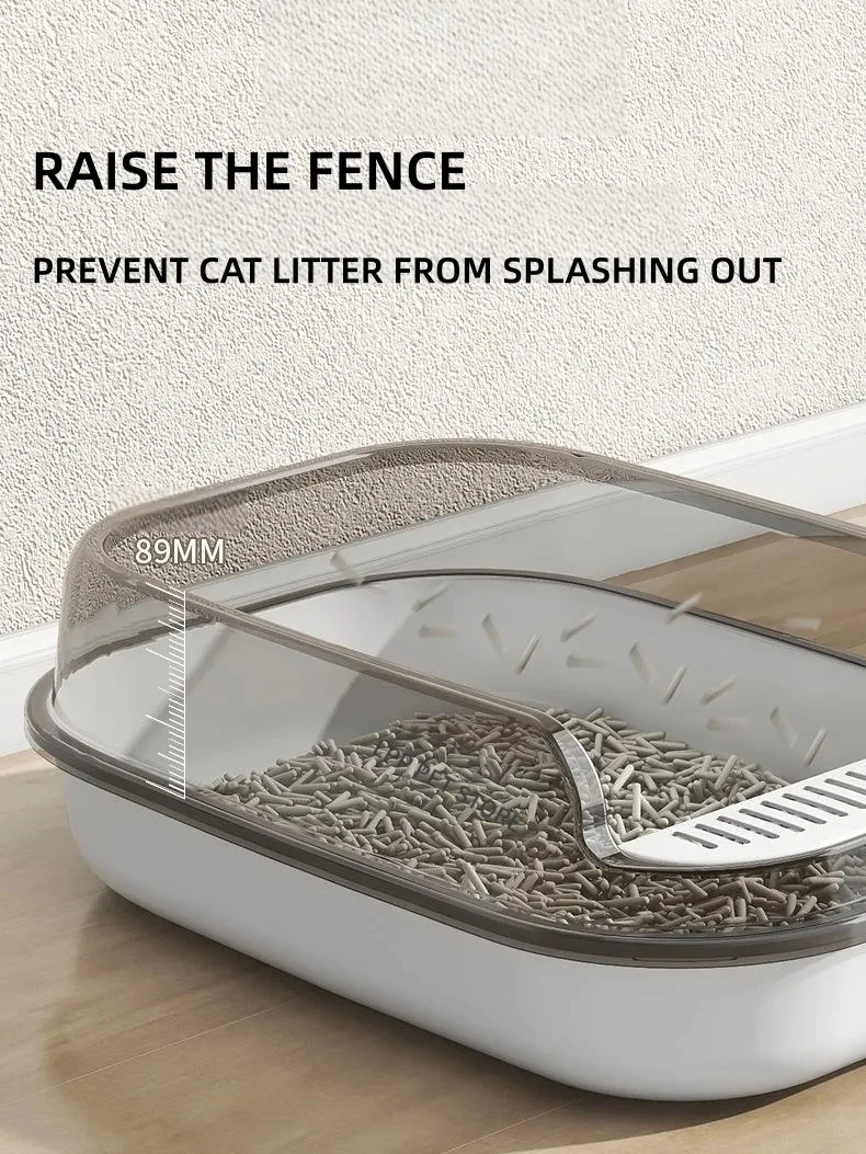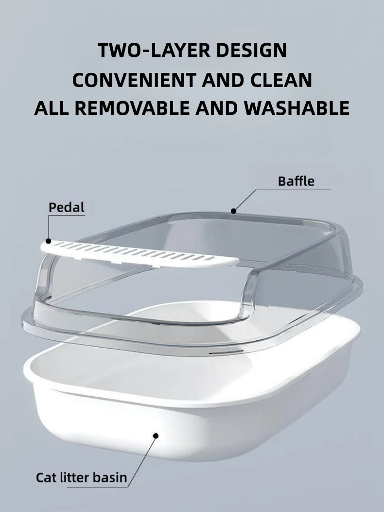 2. Diseño de valla extraíble: valla elevada, nuestra caja de arena para gatos adopta una valla elevada y una estructura desmontable, que puede filtrar fácilmente la arena para gatos, lo que es conveniente para que usted limpie.
