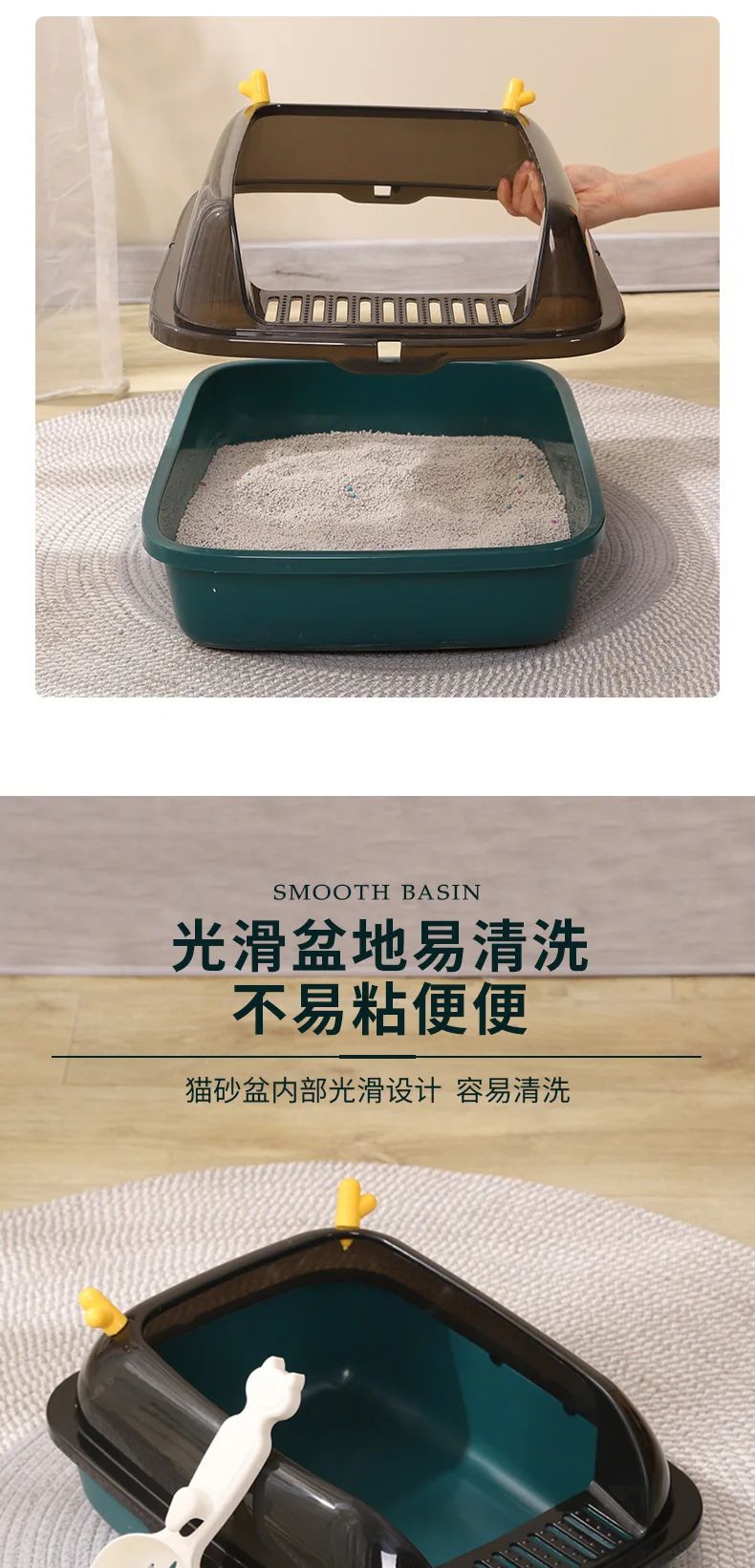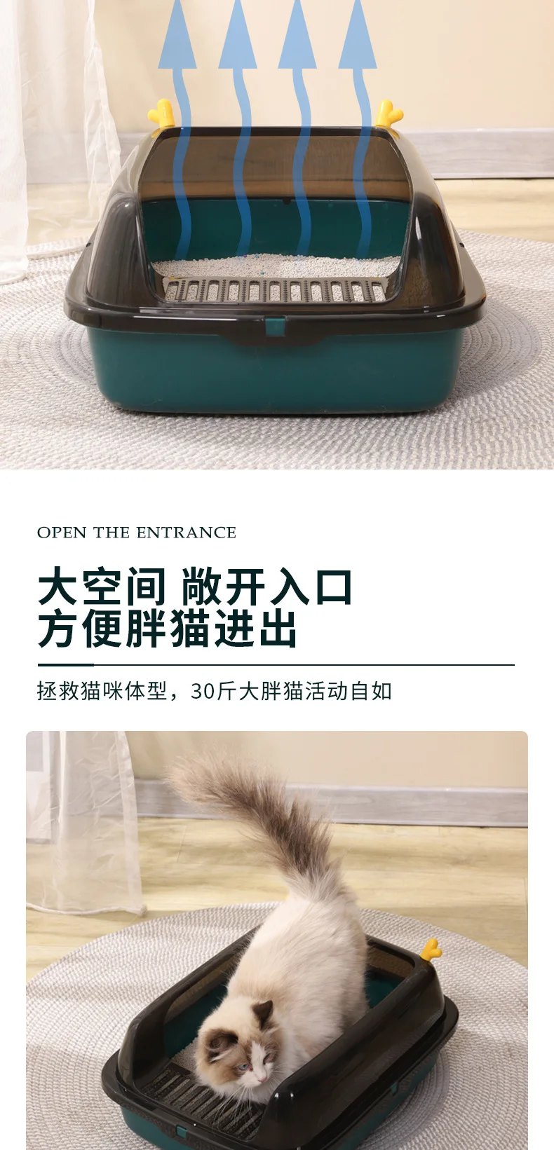 Caja de arena semicerrada para gatos, caja de arena antisalpicaduras de gran tamaño, totalmente abierta, antiarena, inodoro para mascotas pequeñas, productos para mascotas