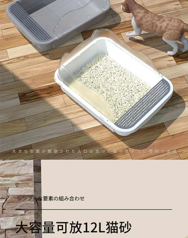 Caja de arena semicerrada para gatos, suministros para mascotas, inodoro abierto de gran tamaño a prueba de salpicaduras para mascotas, lavabo de arena para gatos tamaño King