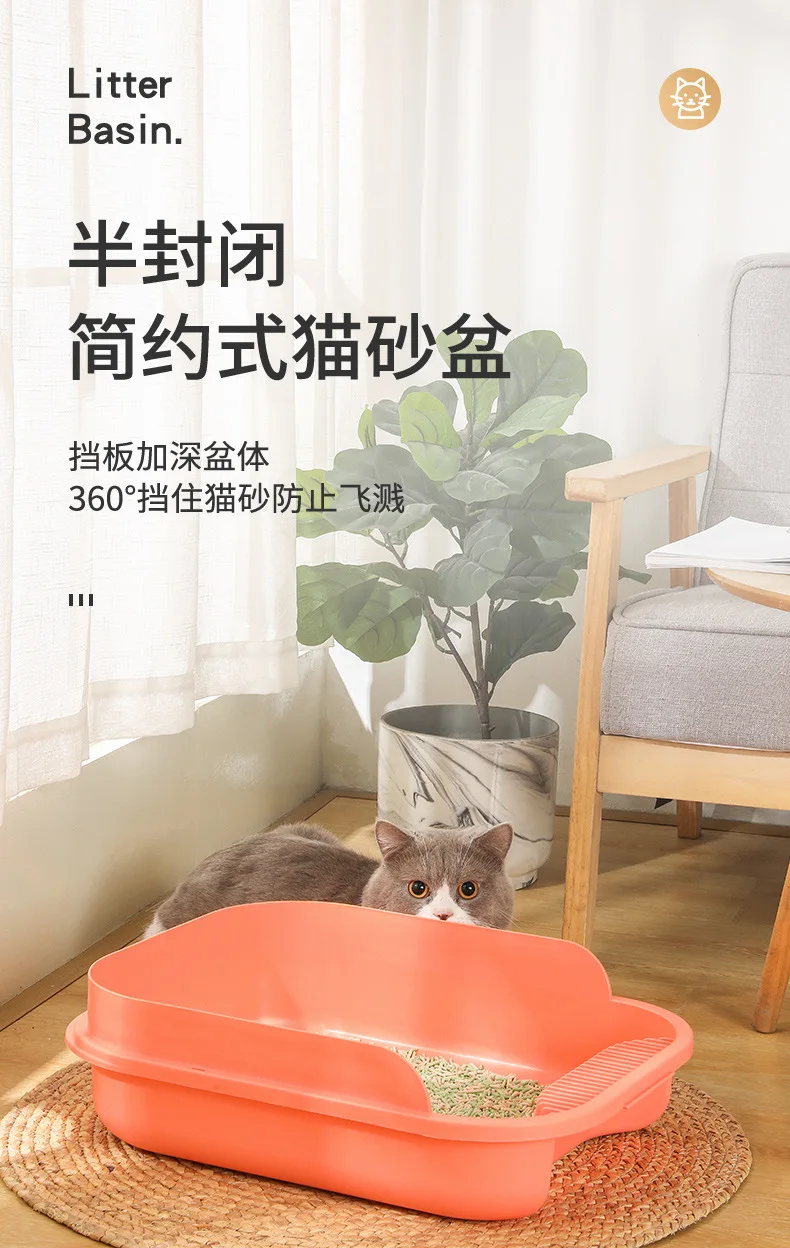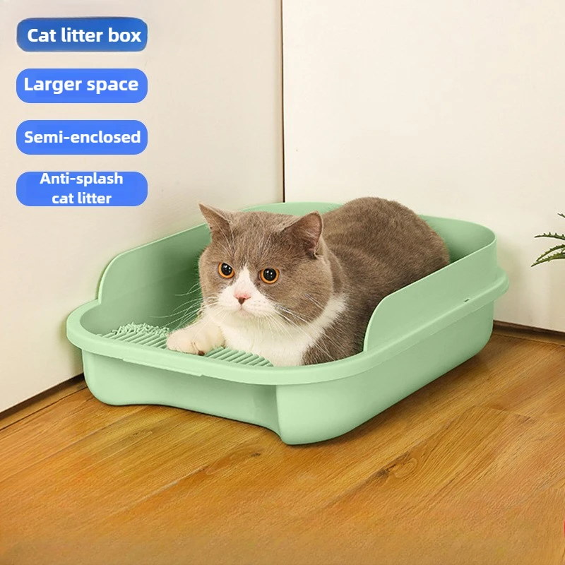 Caja de arena semicerrada portátil para gatos, desodorante a prueba de salpicaduras, inodoro para mascotas, suministros de limpieza para gatos