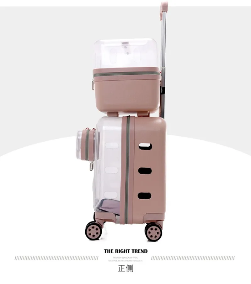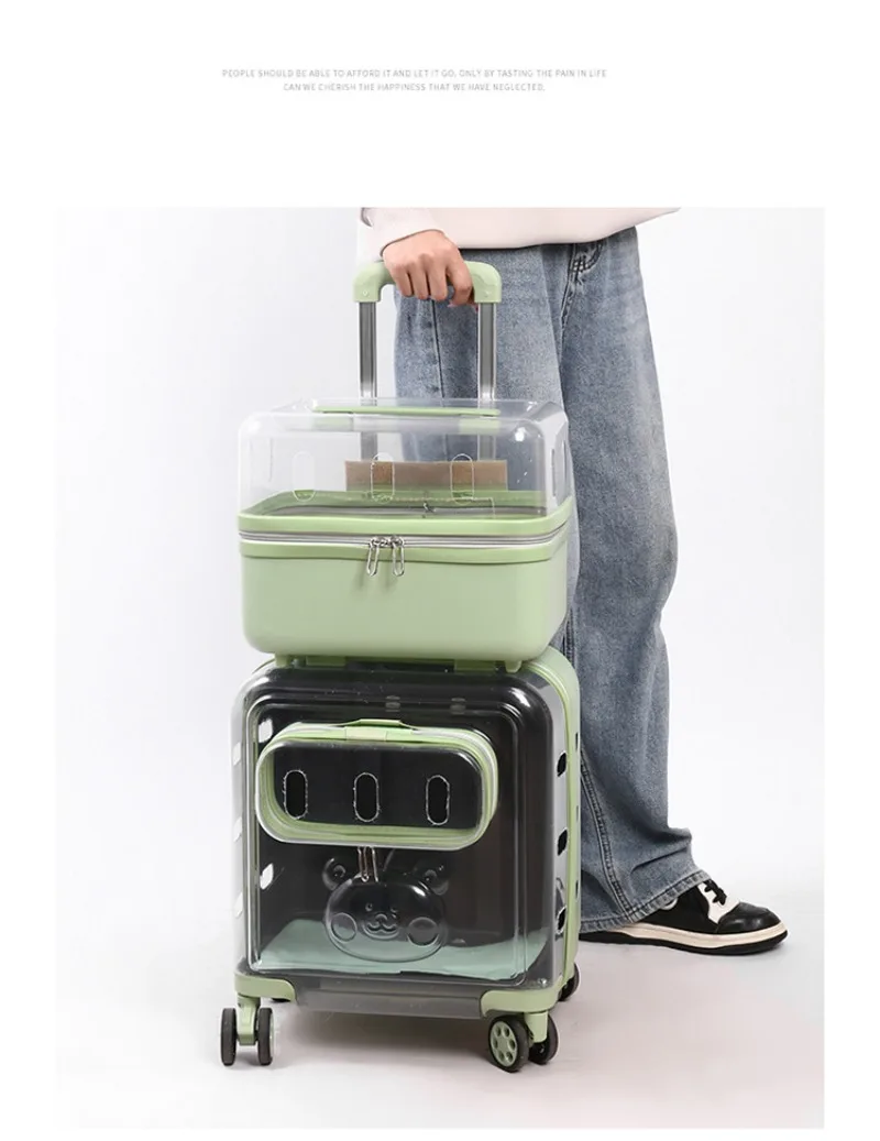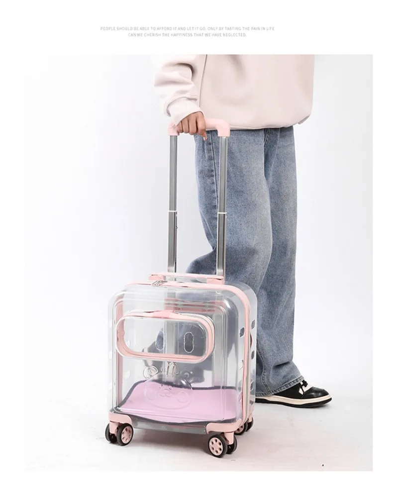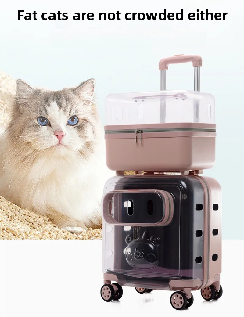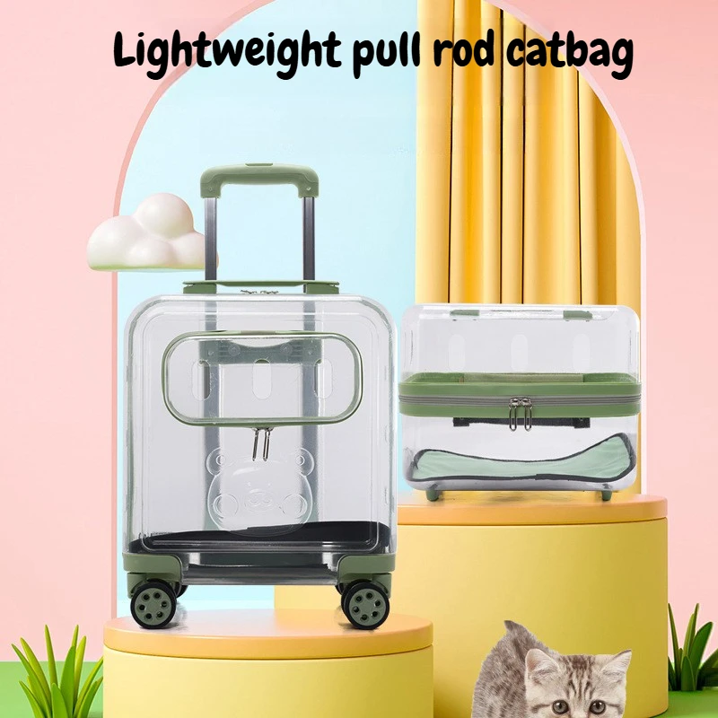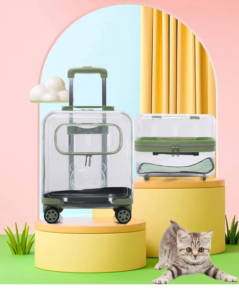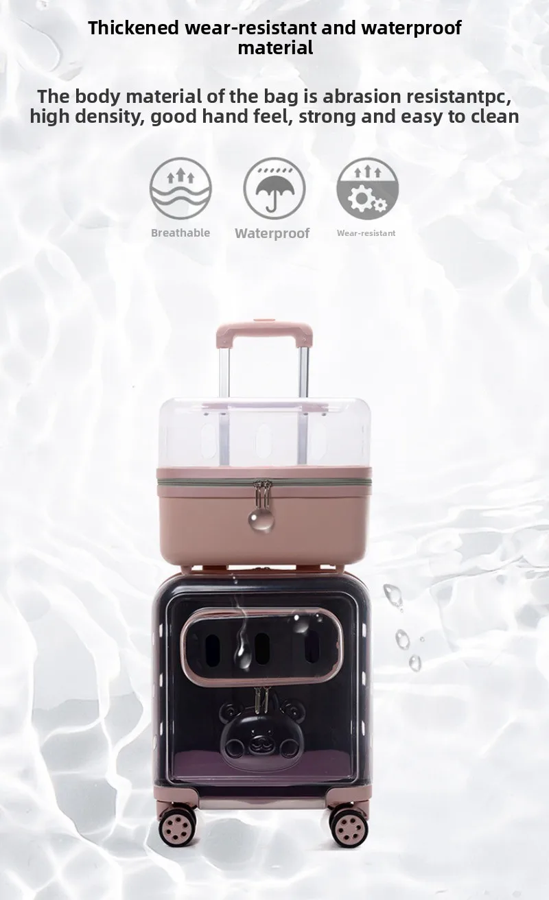 Caja de carrito transparente para mascotas, juego de equipaje con cápsula espacial, transportador para gatos al aire libre, ruedas extraíbles transpirables, accesorios para productos para mascotas
