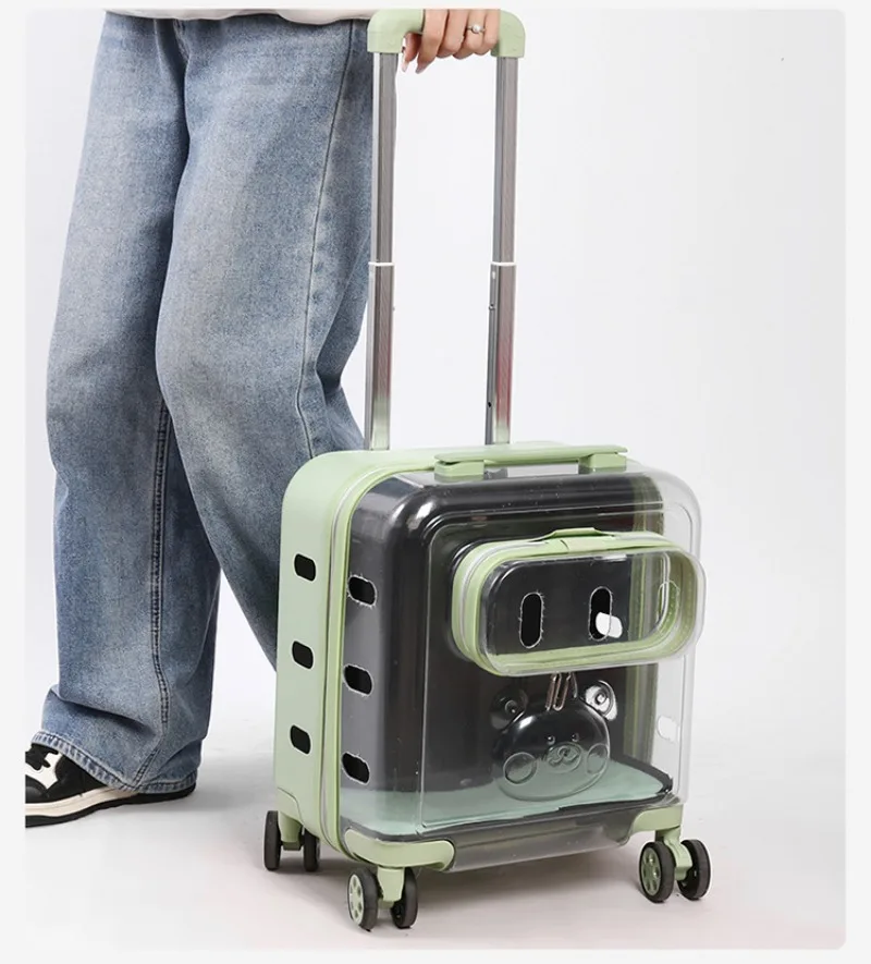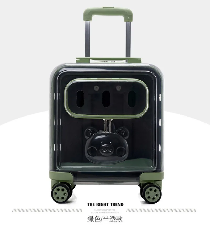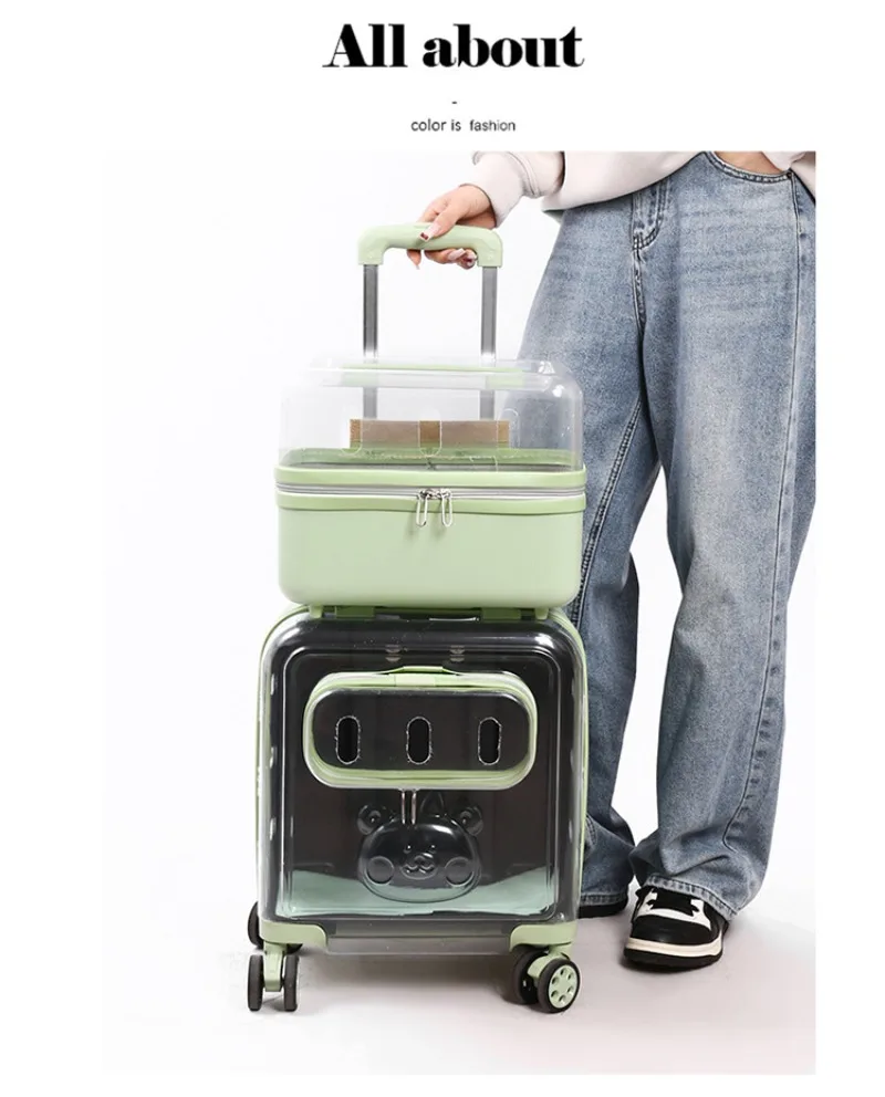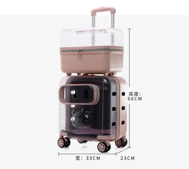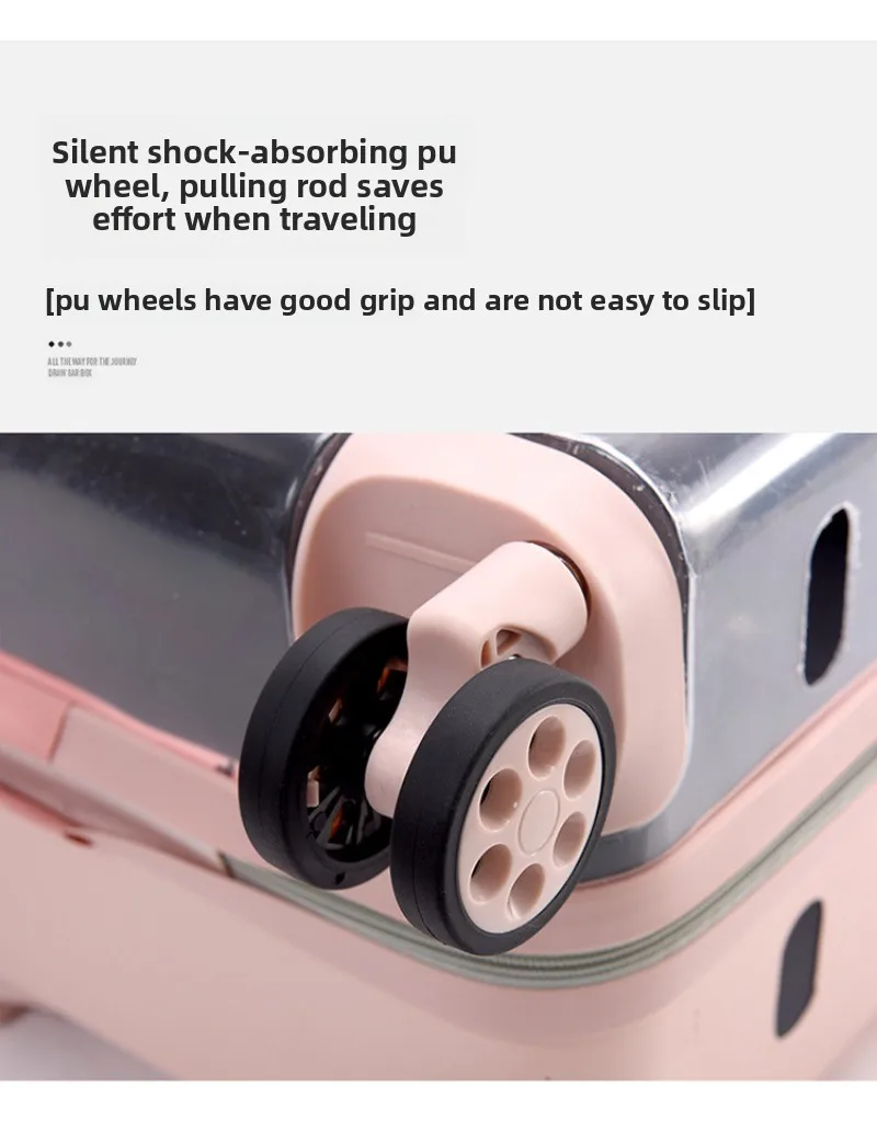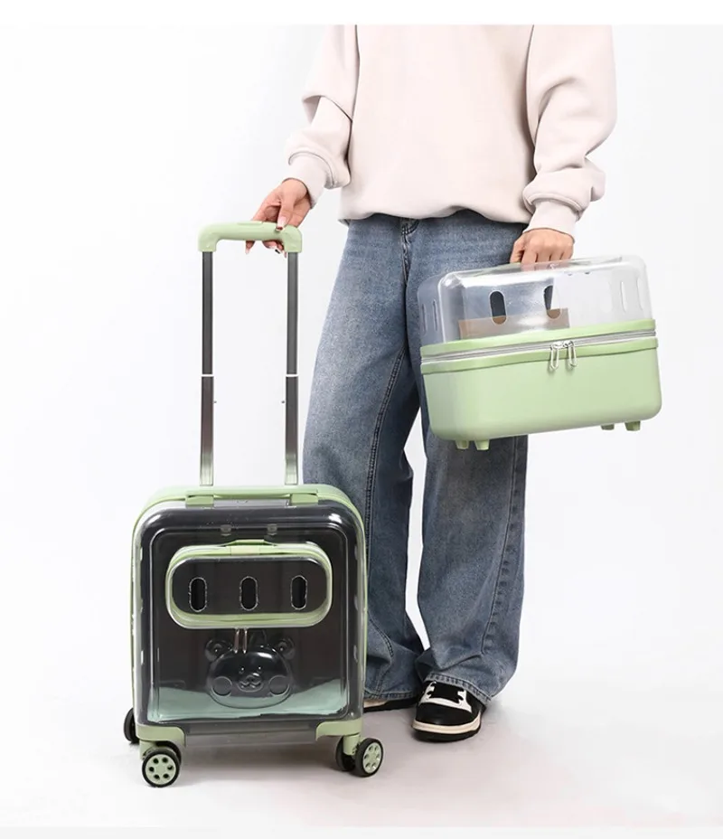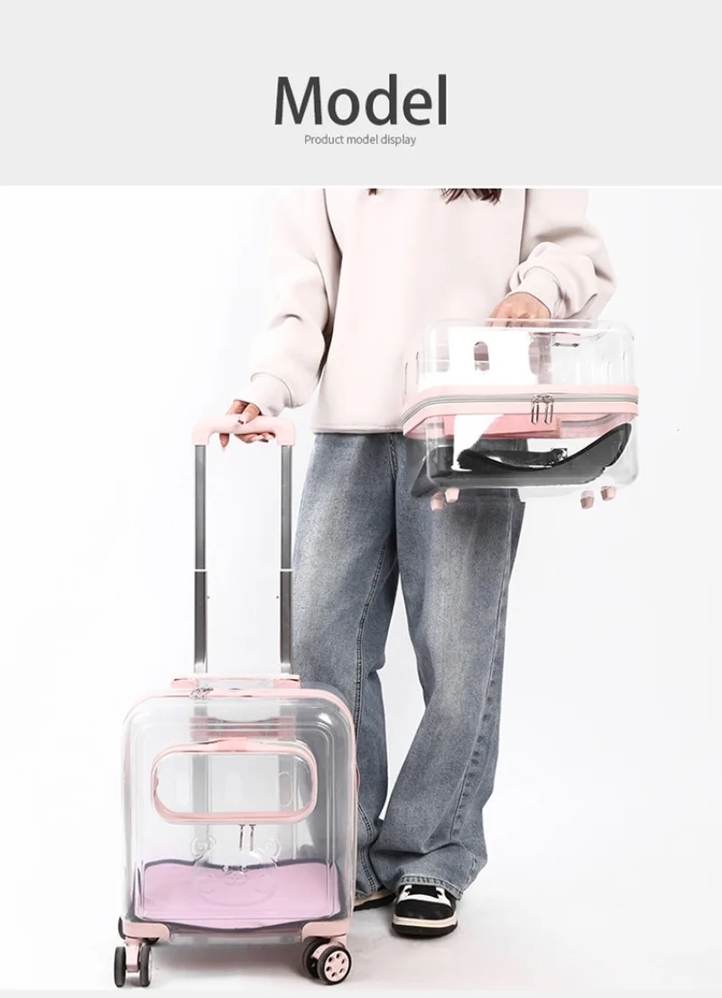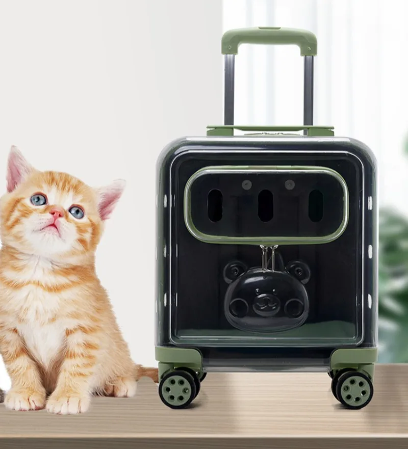 Caja de carrito transparente para mascotas, juego de equipaje con cápsula espacial, transportador para gatos al aire libre, ruedas extraíbles transpirables, accesorios para productos para mascotas