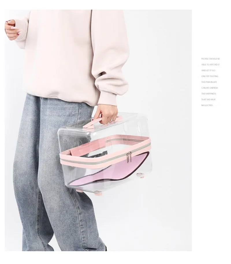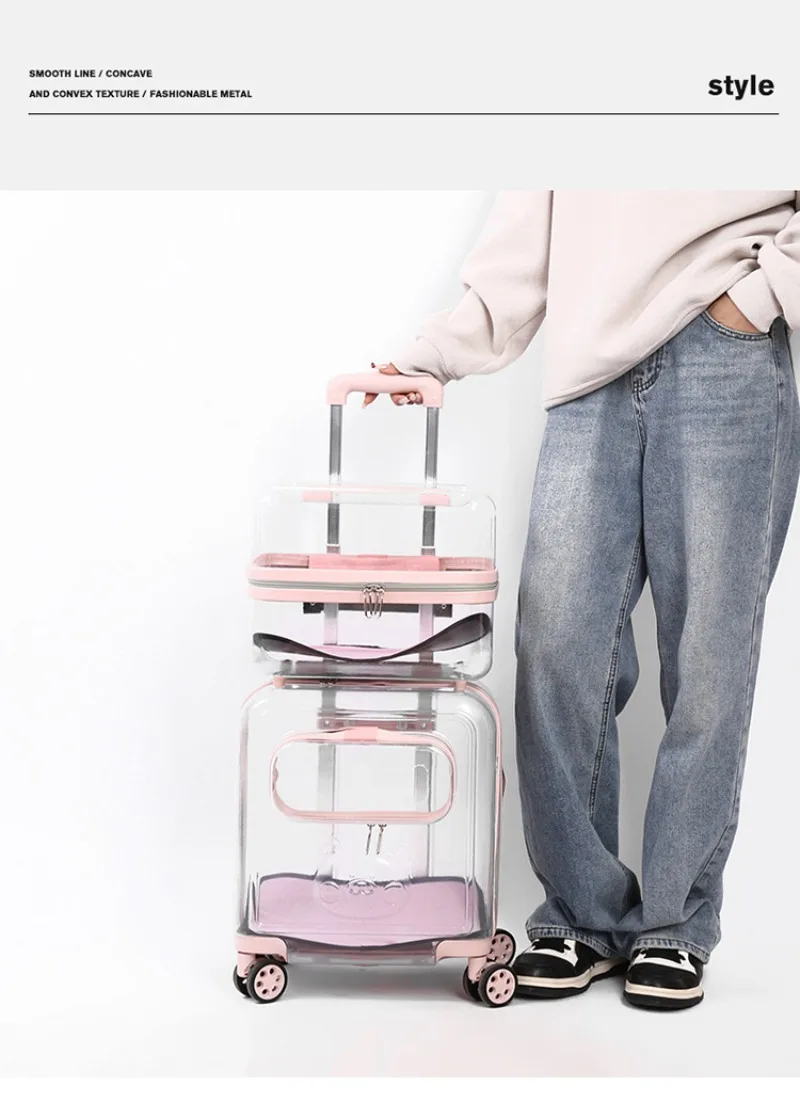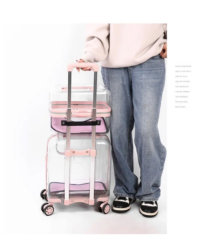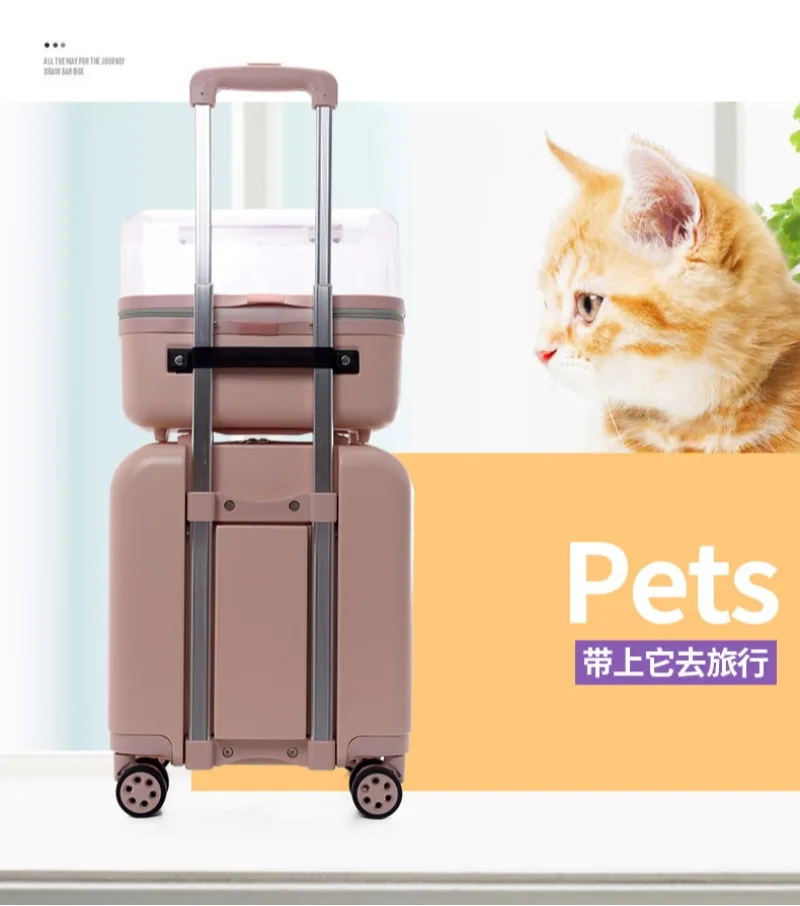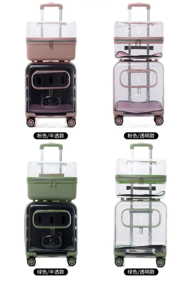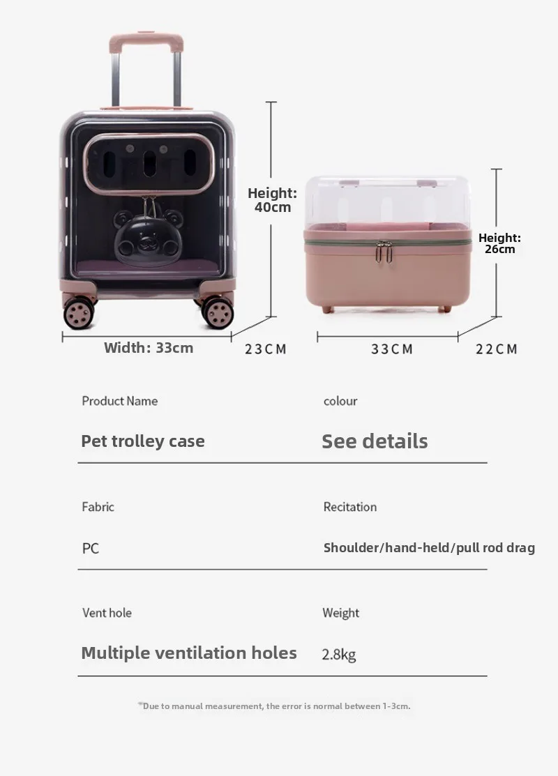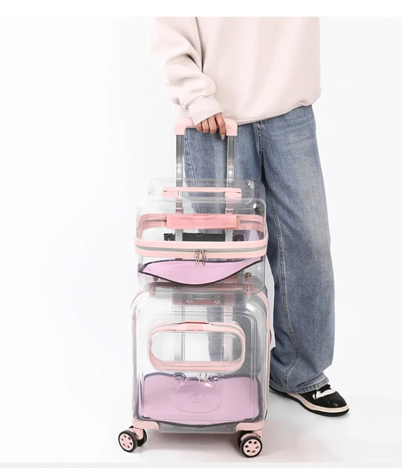 Caja de carrito transparente para mascotas, juego de equipaje con cápsula espacial, transportador para gatos al aire libre, ruedas extraíbles transpirables, accesorios para productos para mascotas