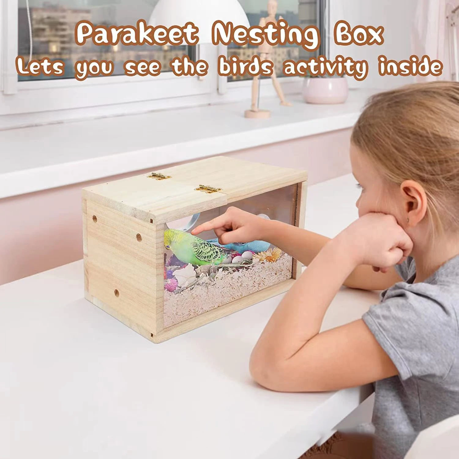 DISEÑO TRANSPARENTE: La caja de cría acrílica transparente le ofrece una visibilidad clara para observar fácilmente las situaciones interiores, de modo que los niños puedan observar fácilmente el proceso de cría y eclosión de los pájaros, para lograr la armonía entre el hombre y la naturaleza.