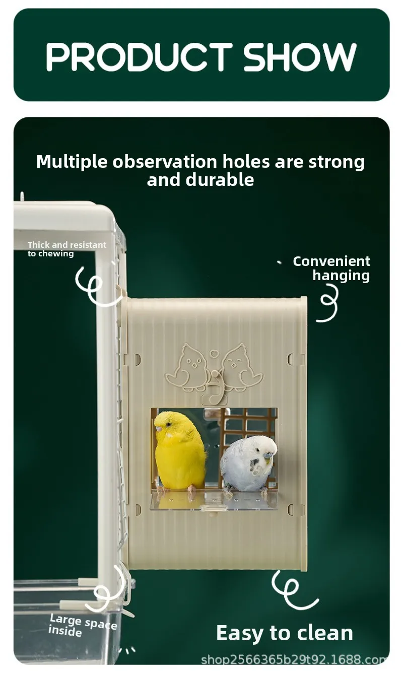 Caja de cría específica para loros, caja para incubar Visual montada en la pared, nido para cría de mascotas, suministros especiales, jaulas para pájaros de PVC de fácil limpieza