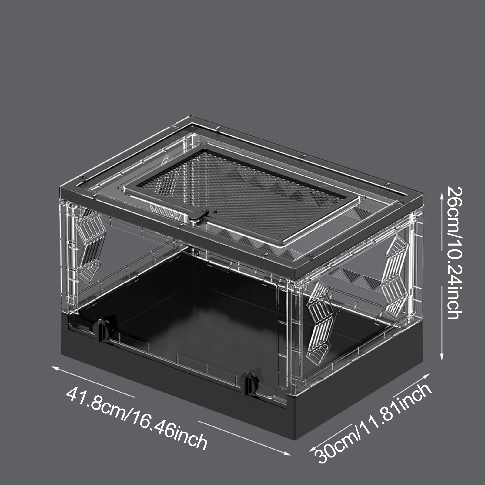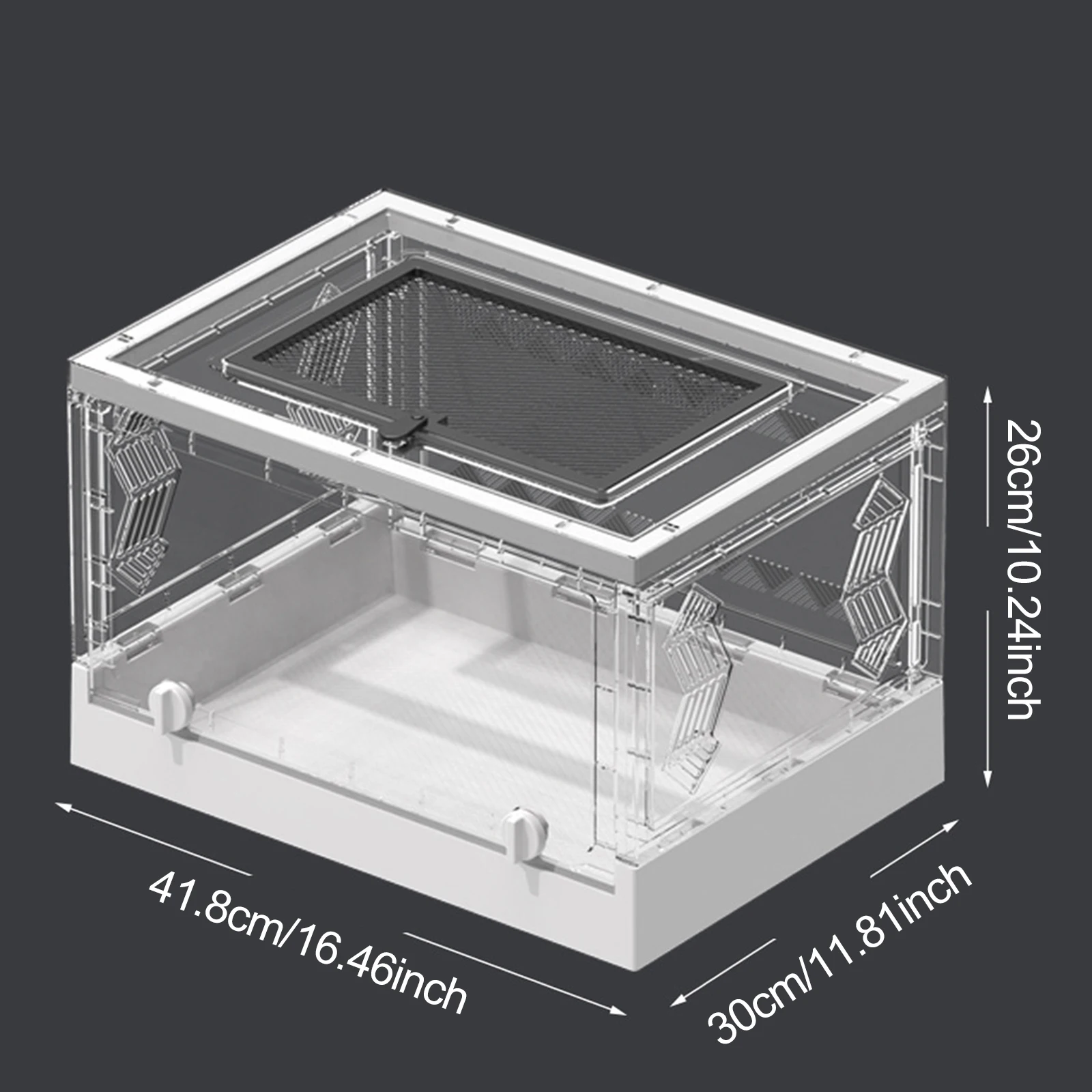 【사이즈 정보】 넉넉한 사이즈의 접이식 파충류 테라리움으로, 약 41.8cm x 30cm x 26cm (16.46인치 x 11.81인치 x 10.24인치) 크기를 자랑합니다. 작은 반려동물에게 충분한 공간을 제공하면서도 공간 활용도를 높였습니다.