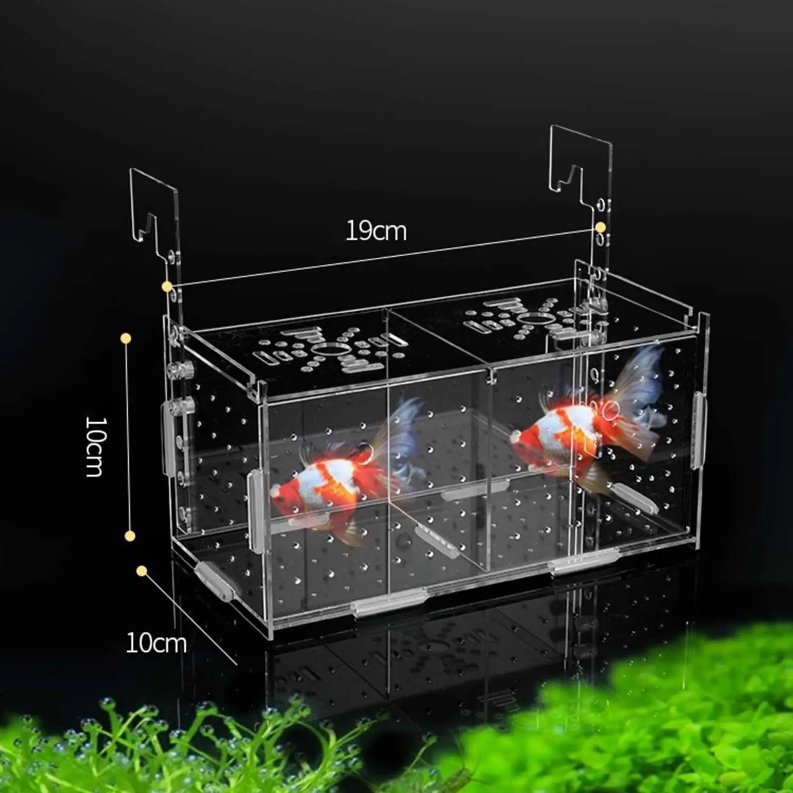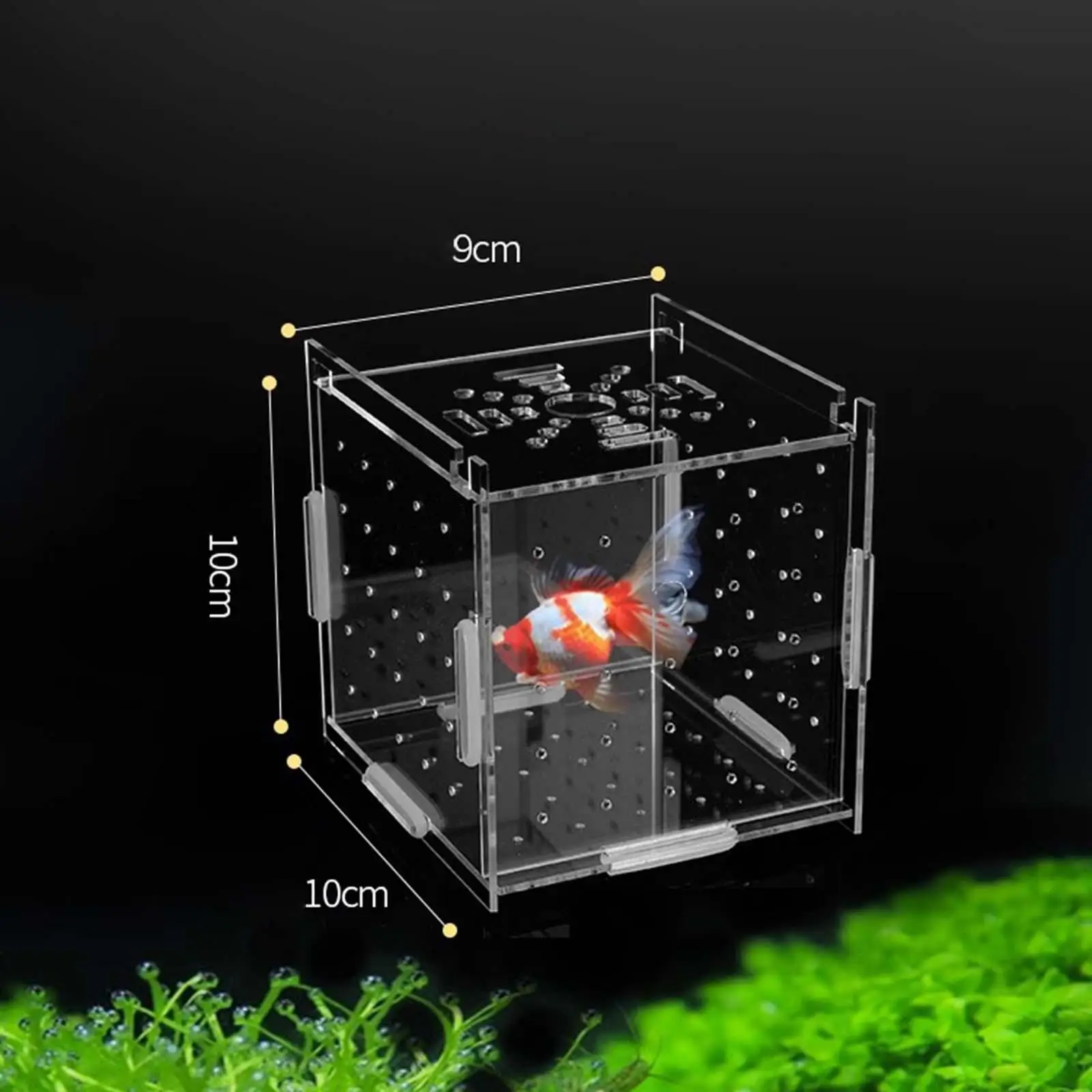 Tamaño compacto: Mide 10 cm de ancho y 10 cm de alto, esta caja de aislamiento para peces bebés es ideal para gestionar pequeños entornos acuáticos de manera eficiente mientras ahorra espacio en la configuración de su acuario.